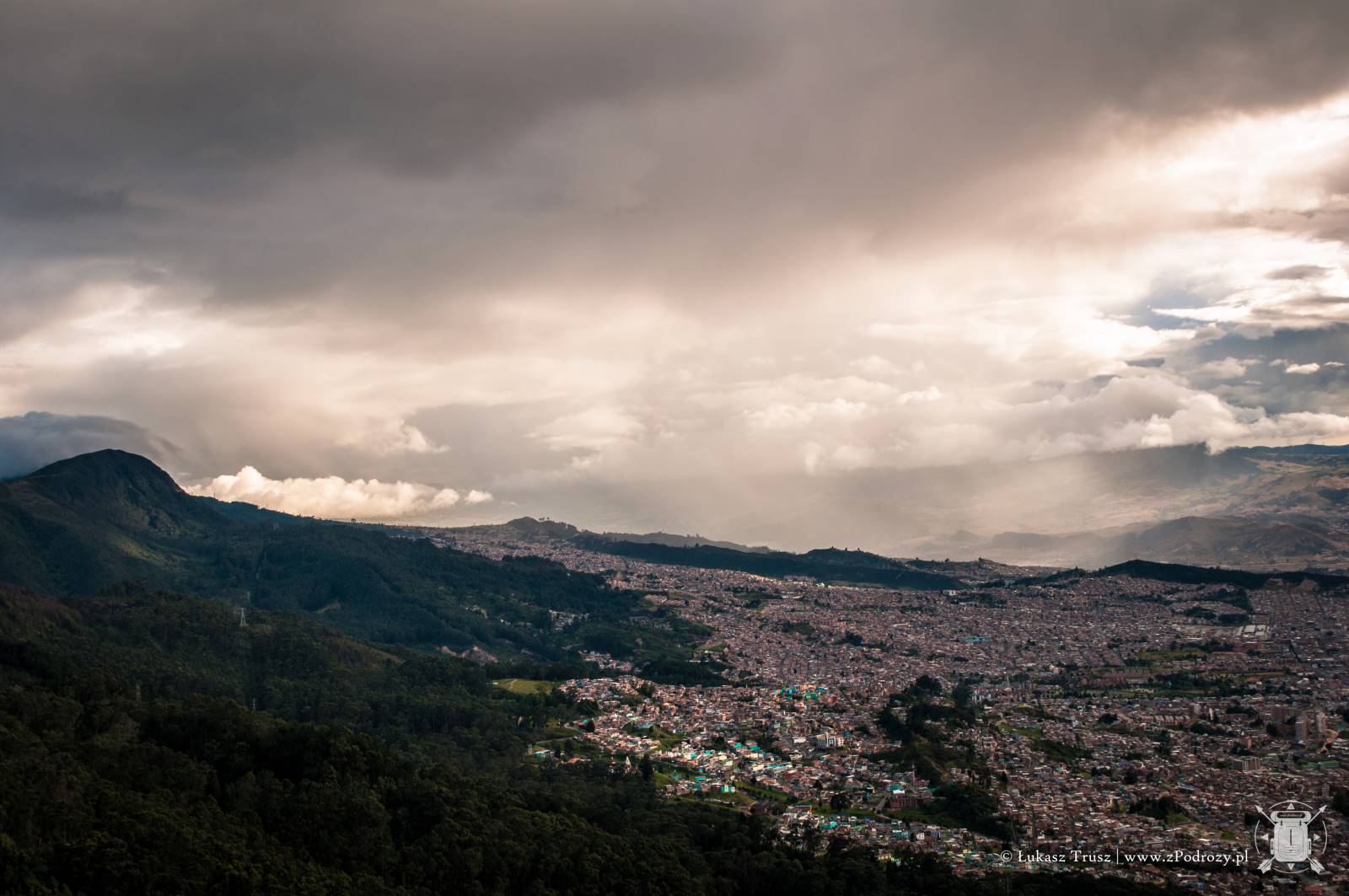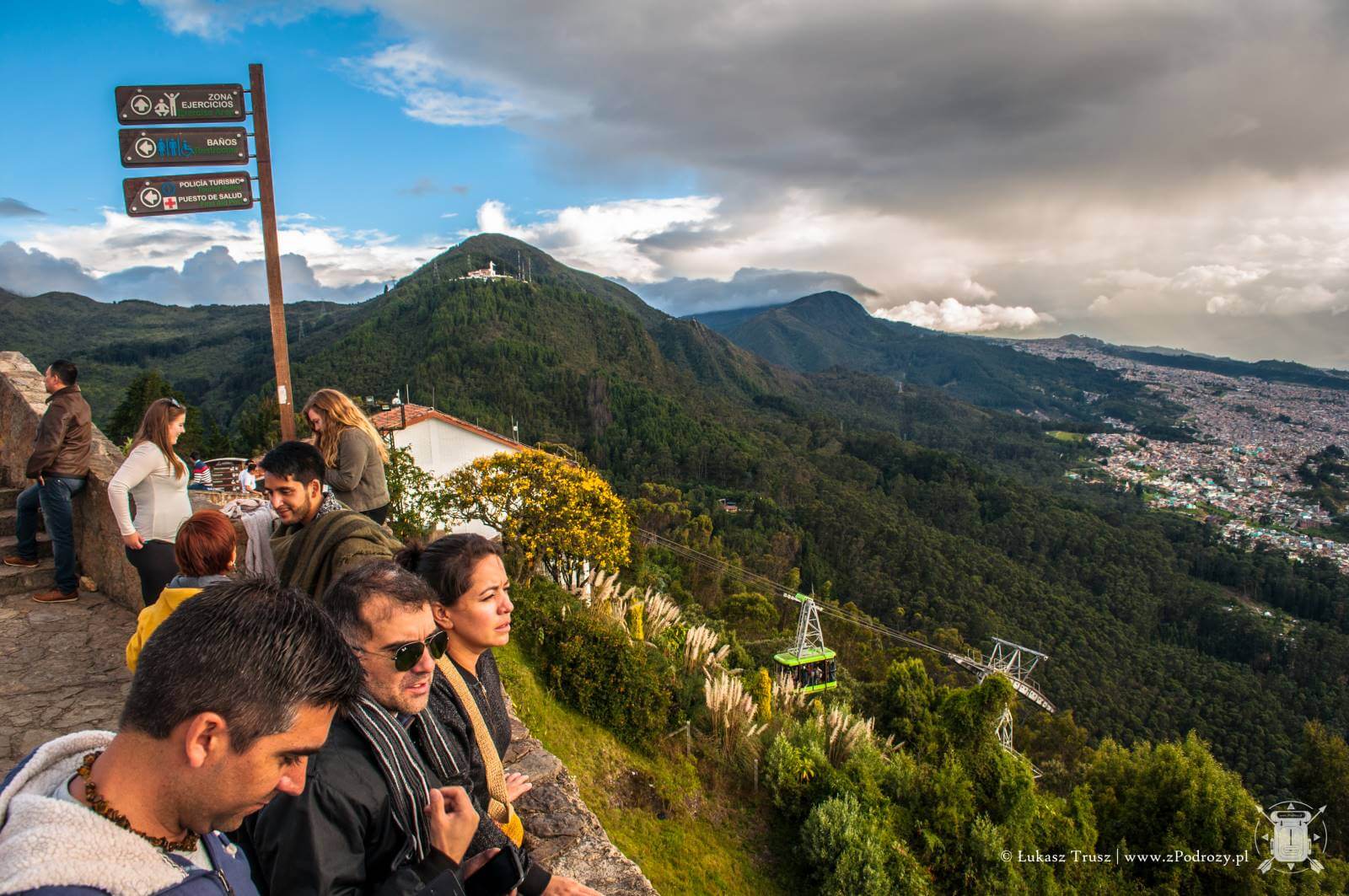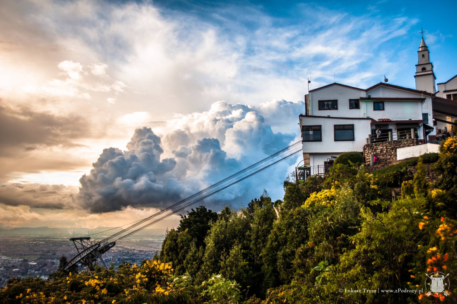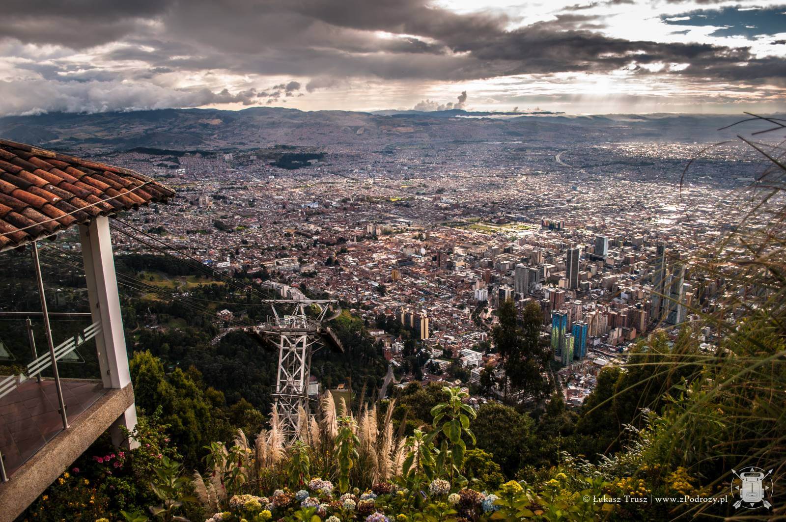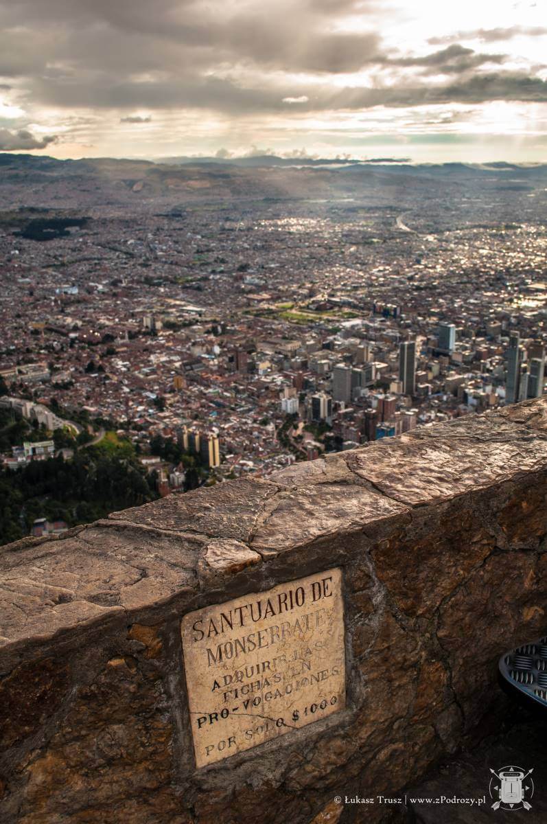 Jednak największe wrażenie robi widok ze szczytu wzgórza. Panorama na całą Bogotę zapiera dech w piersiach. Szczególnie polecam wybrać się po południu i zaczekać na zachód słońca. Coś pięknego! Choć podobno dobra widoczność na szczycie nie zdarza się zbyt często, to jak widać miałem niezwykłe szczęście. Na szczycie znajdziemy również kafejki z przekąskami i kilka stoisk z pamiątkami, ale podejrzewam, że ceny są znacznie wyższe niż na mieście.