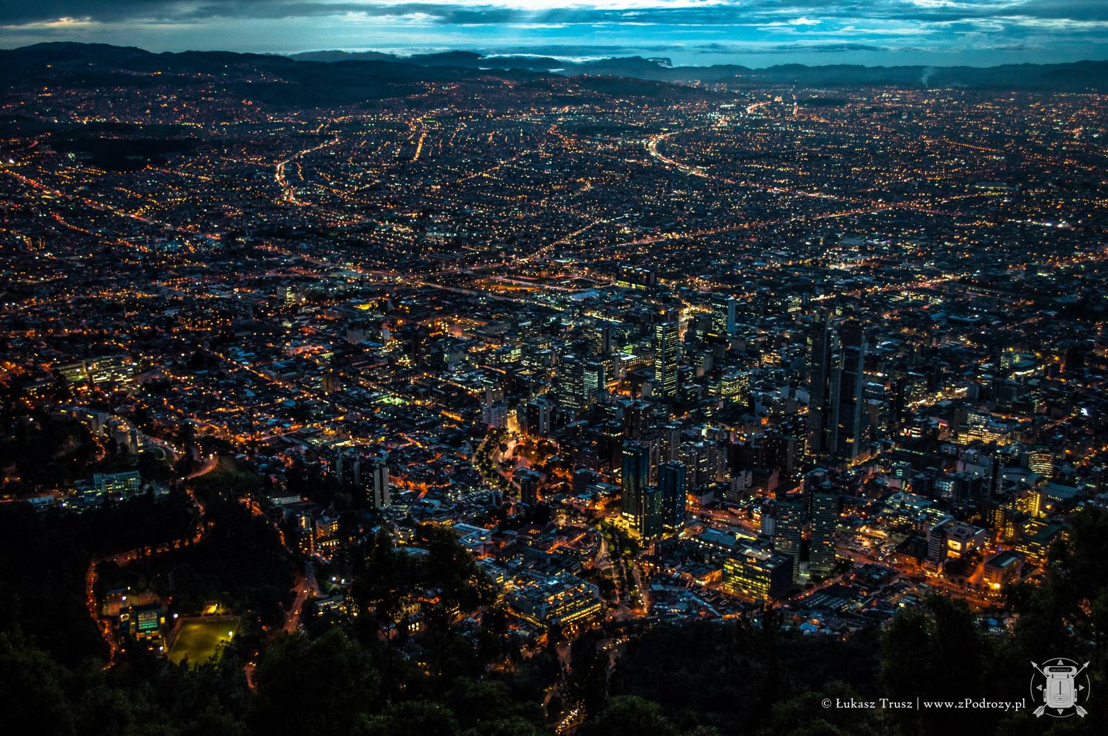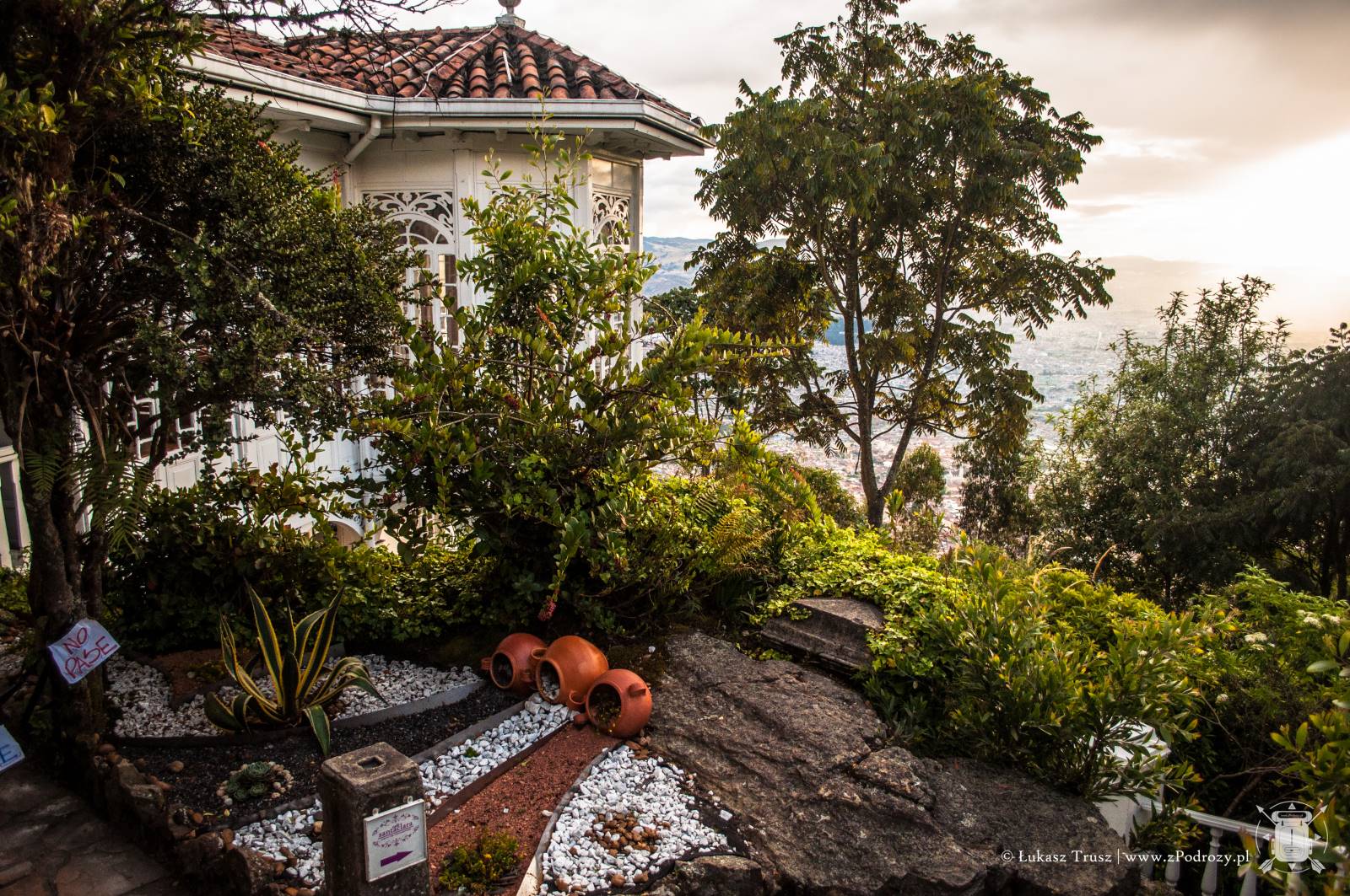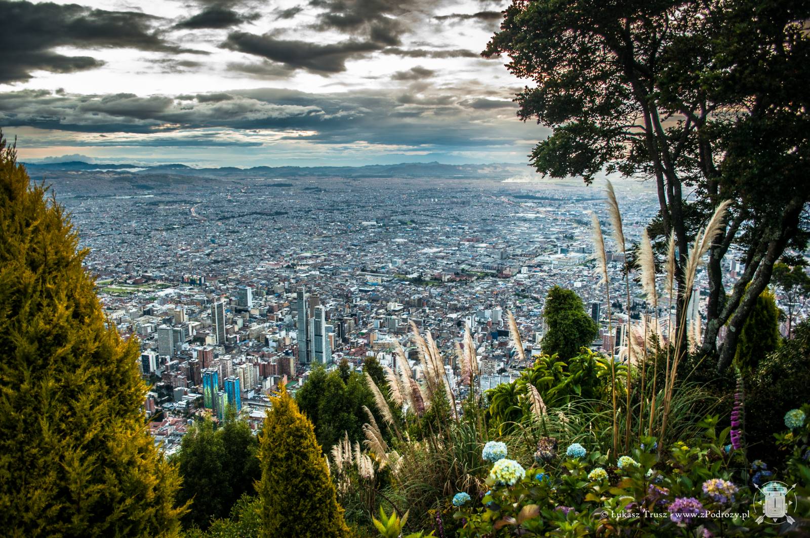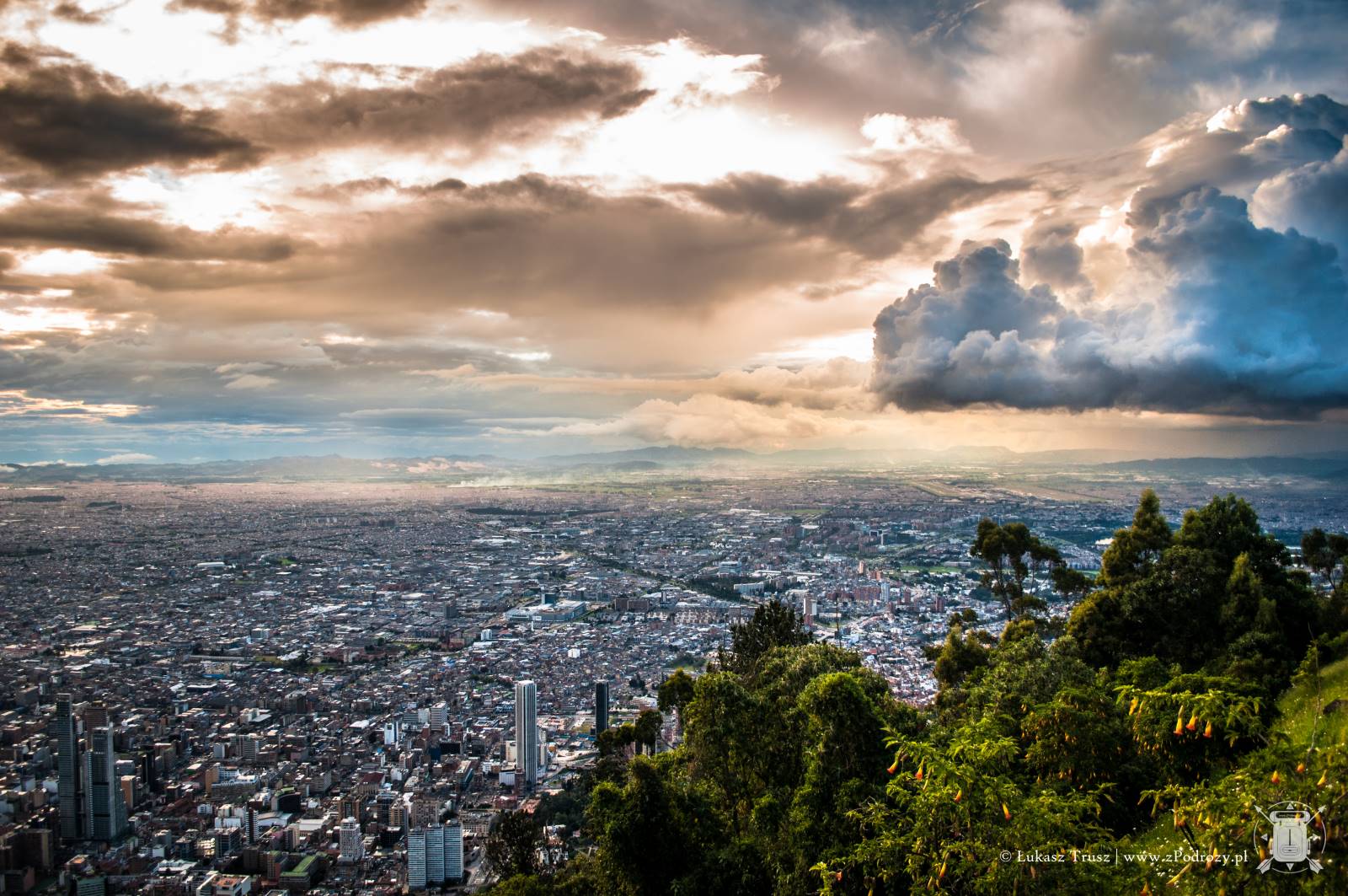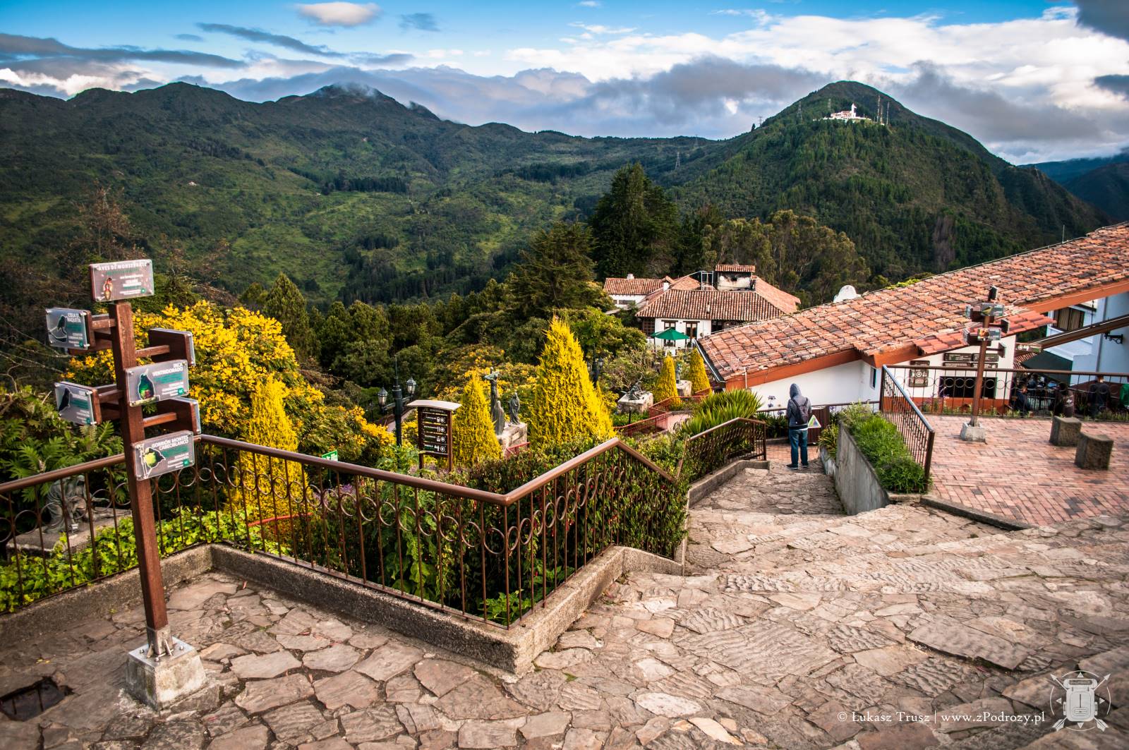 Jednak największe wrażenie robi widok ze szczytu wzgórza. Panorama na całą Bogotę zapiera dech w piersiach. Szczególnie polecam wybrać się po południu i zaczekać na zachód słońca. Coś pięknego! Choć podobno dobra widoczność na szczycie nie zdarza się zbyt często, to jak widać miałem niezwykłe szczęście. Na szczycie znajdziemy również kafejki z przekąskami i kilka stoisk z pamiątkami, ale podejrzewam, że ceny są znacznie wyższe niż na mieście.