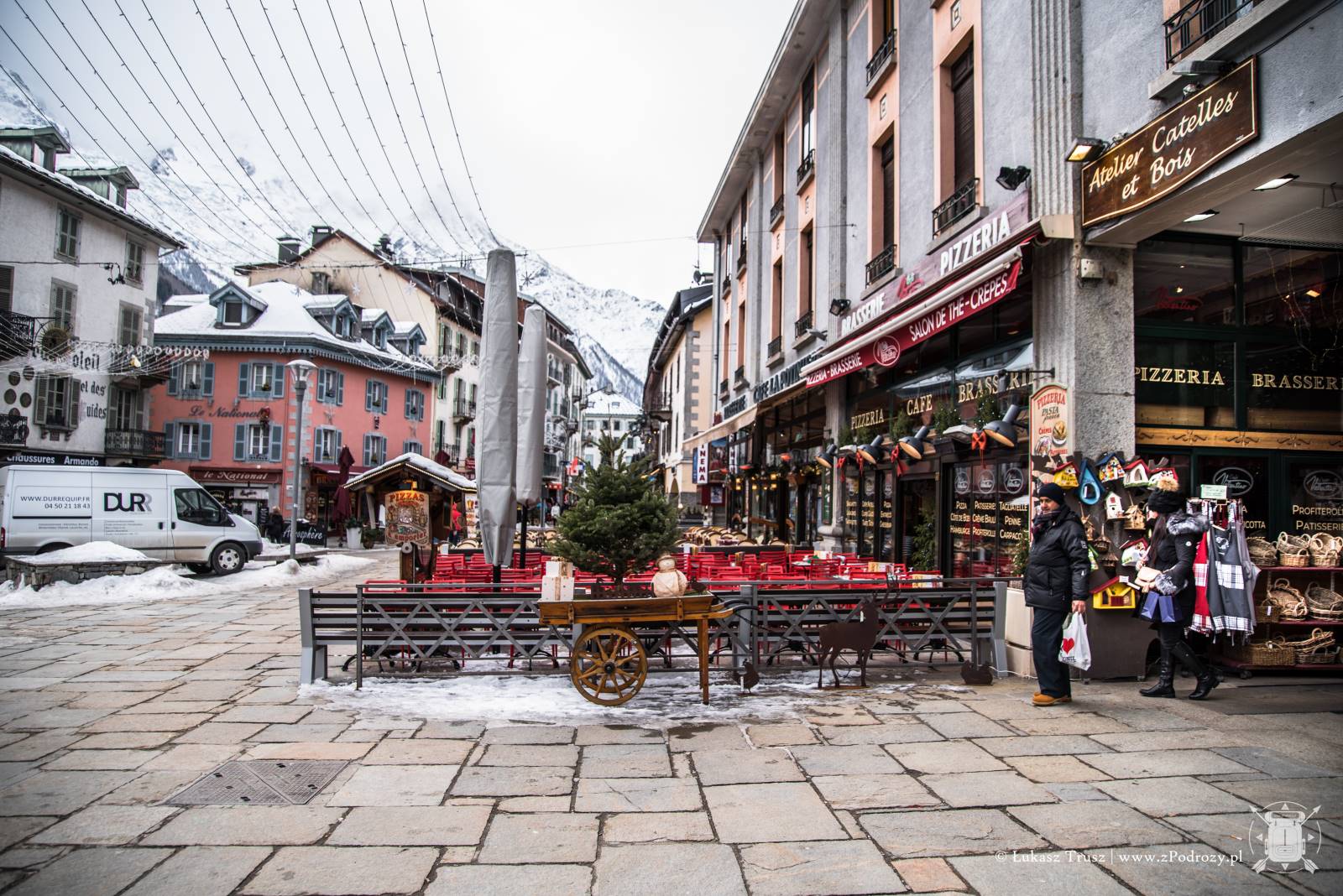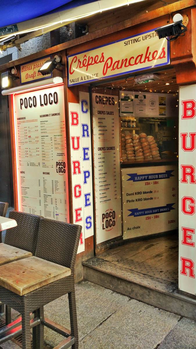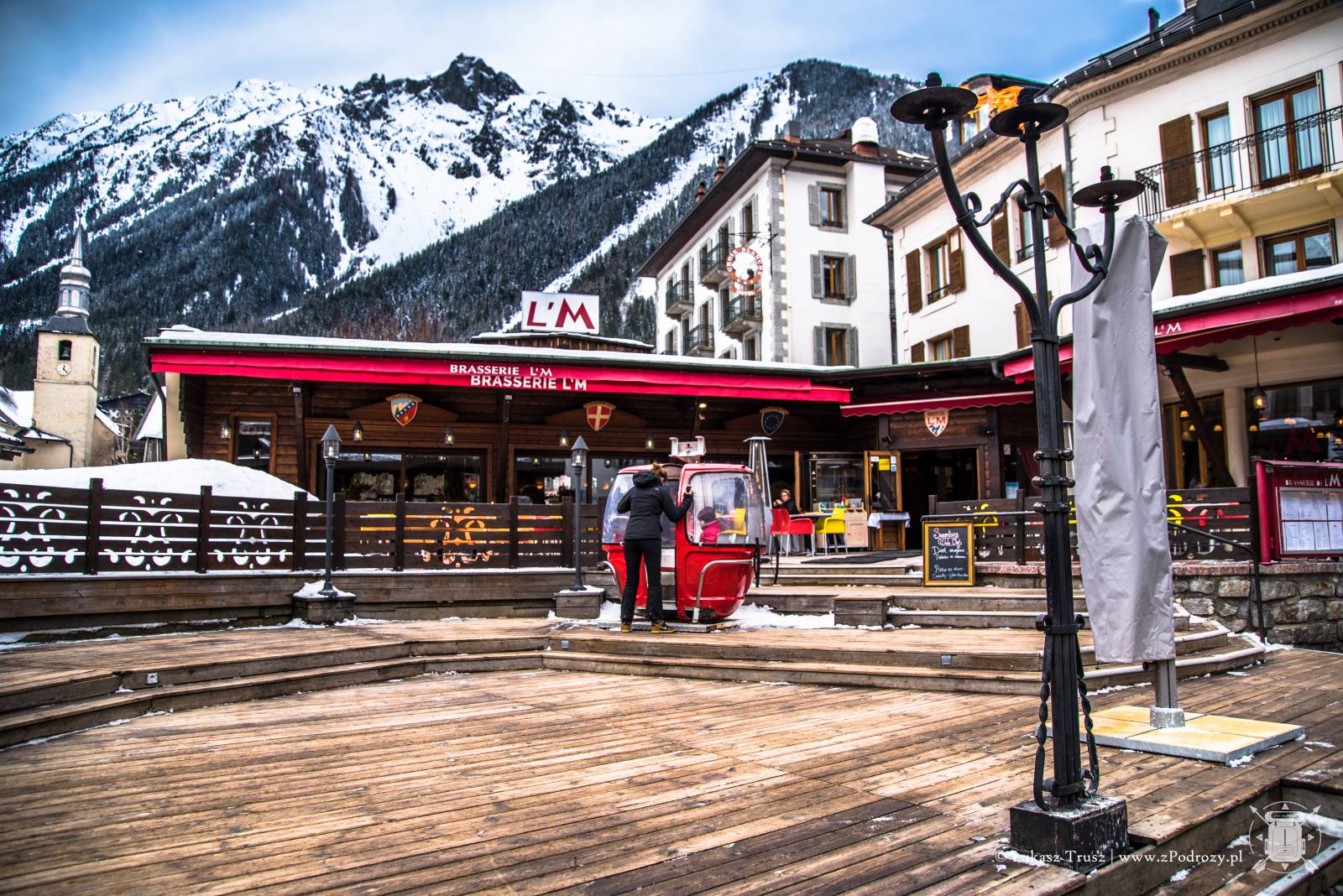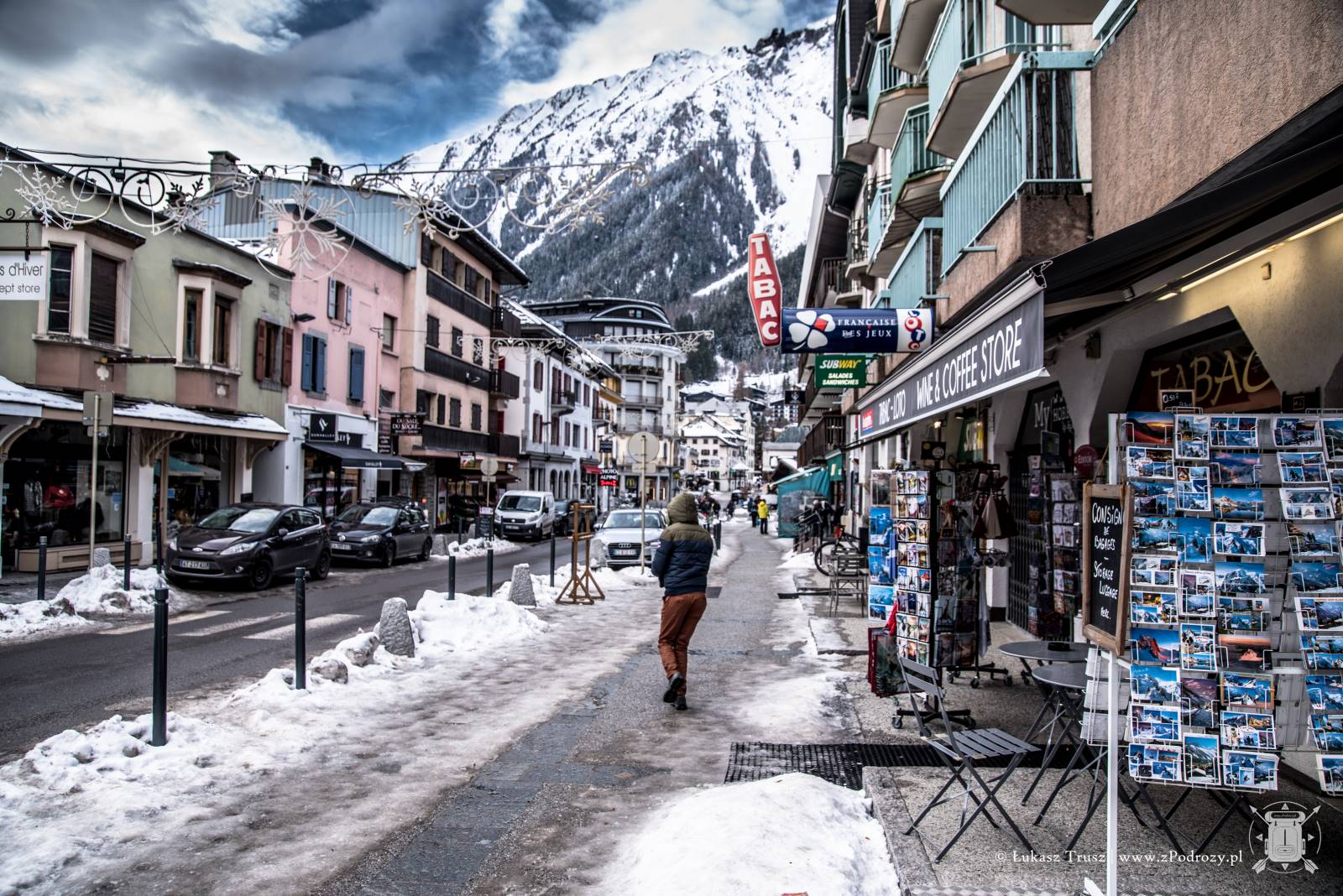 Obecnie Chamonix jest przepełnione zapaleńcami zimowych sportów, a także ludźmi, którzy po prostu chcą się polansować w modnym miejscu “bo dobrze jest tu bywać”, a całą ich zimowa aktywność sprowadza się do noszenia drogich i markowych zimowych ubrań. Kurtyna. Wpływa to niestety również na ceny w mieście, więc ciężko jest znaleźć smaczną i budżetową knajpę. Zostaje jeszcze market Spar ukryty nieopodal torów między budynkami. Niemniej jednak jest takie miejsce, które musicie odwiedzić, aby coś zjeść i napić się piwa z lodowcową wodą! Nie dość, że wyjątkowo tanio, to jedzenie jest doprawdy wyborne i rozpieści wasze zmarznięte zmysły. Zapamiętajcie dobrze tą nazwę, gdyż będzie Wam się śniła po nocach: POCO LOCO ! Znajduje się ona na głównym deptaku, a poniżej macie wizualne podpowiedzi jak ją wyśledzić, gdyż z zewnątrz nie zajmuje zbyt dużo miejsca.