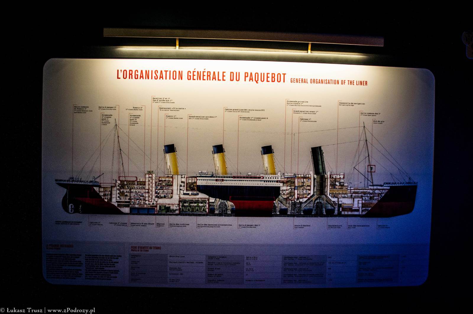 Wypłyńmy teraz na głębsze wody morskich opowieści i zawitajmy na pokład Titanica. Nie wiem czy ktoś z czytających ma w głowie teraz pytanie „Co ma Titanic do jakiegoś nic nie mówiącego mi miasta?”, ale ja takie miałem (sorry). Tak więc ma tyle, że Cherbourg był drugim przystankiem na na trasie Titanica do Amerykańskiego Snu. W muzeum, gdzie jego część poświęcona jest właśnie temu potężnemu statkowi, możemy poczuć się jak jeden z pasażerów. Posłuchać rozmów załogi, zobaczyć jak wyglądały pomieszczenia, jakim rozrywkom mogli oddać się goście, a także prześledzić każdą minutę rejsu. Co najbardziej utkwiło mi w pamięci to fakt, iż kapitan wiedział, że ma przed sobą lodowe przeszkody. Początkowy kurs był skierowany na brzeg tego obszaru, a po jego zmianie statek wpłynął w sam środek. Kiedy góra lodowa została zauważona przez jedną z osób, statek miał 42 sekundy, aby wykonać manewr i ją ominąć. Finał historii raczej wszystkim znany.