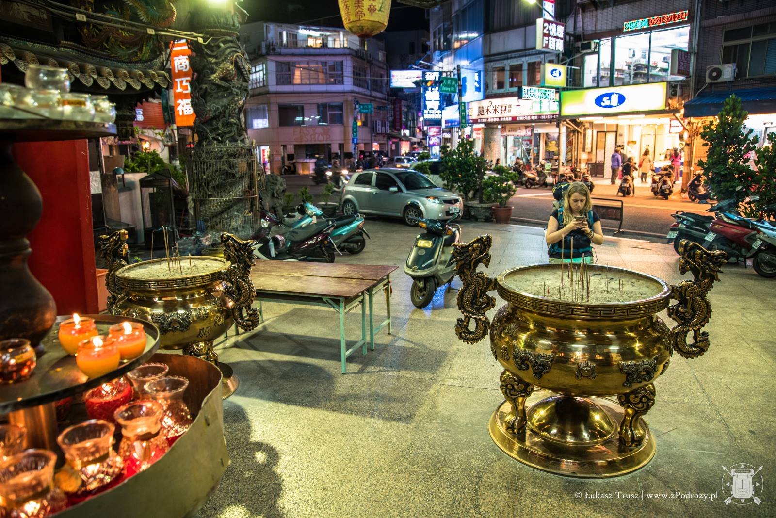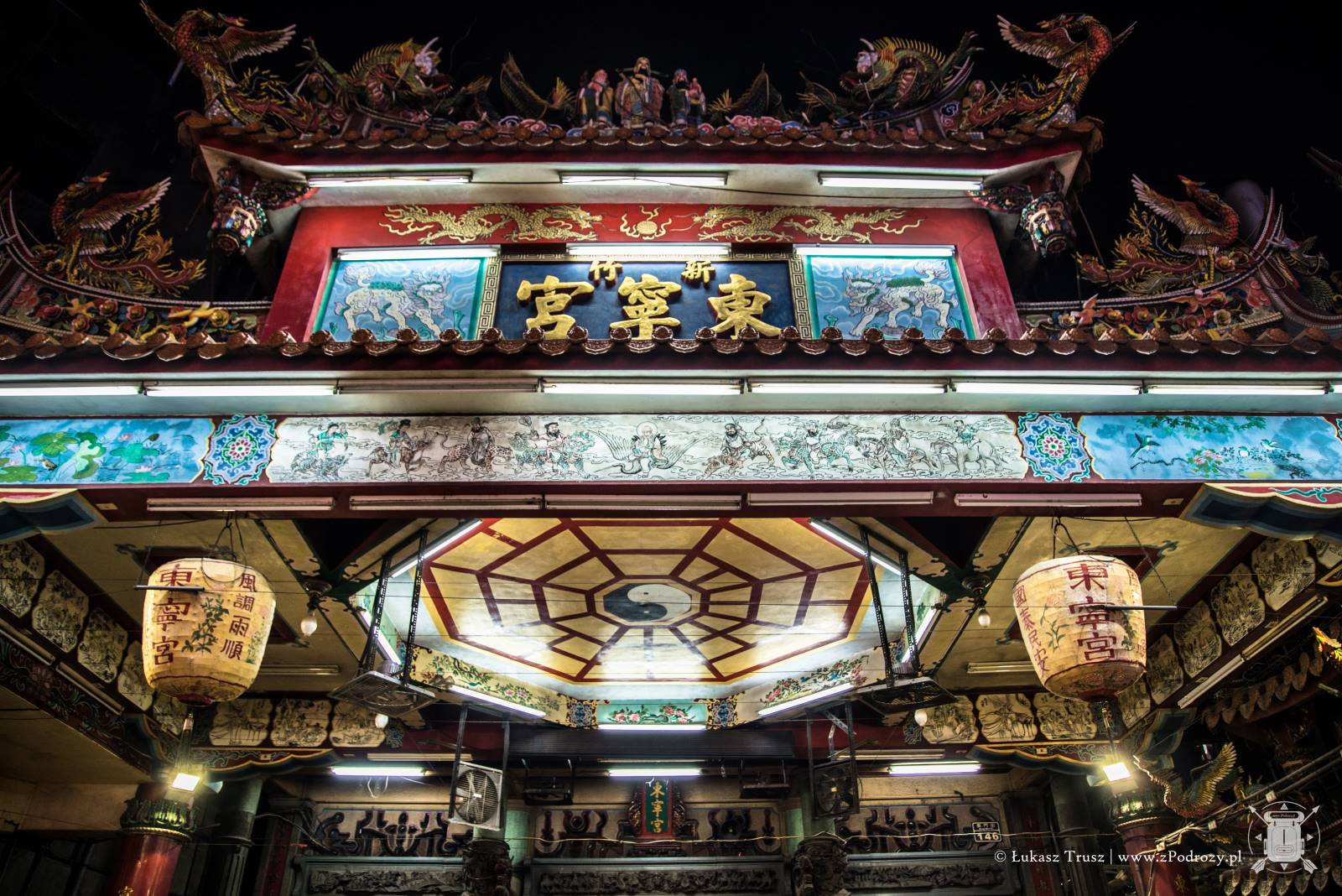 Hsinchu można by powiedzieć, że jest takim standardowym zwykłym miastem. Znajdziemy kilka świątyń, które na “ludziach z zachodu” pewnie zrobią wrażenie. Możemy zjeść coś na wagę z lokalesami w stołówce i zakosztować kolejnych nowności kulinarnych, nie wydając przy tym dużej sumy (mam tu na myśli ok 10zł na osobę, za tackę ze smakołykami, którą zobaczycie na zdjęciach). Jest oczywiście jakiś targ, masa skuterów i pełno kolorowych neonów. Poza tym niewiele do zobaczenia.