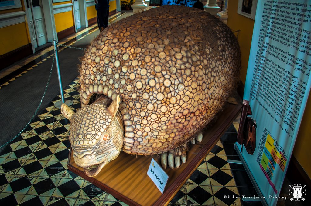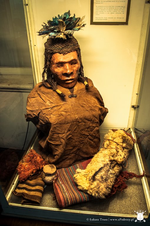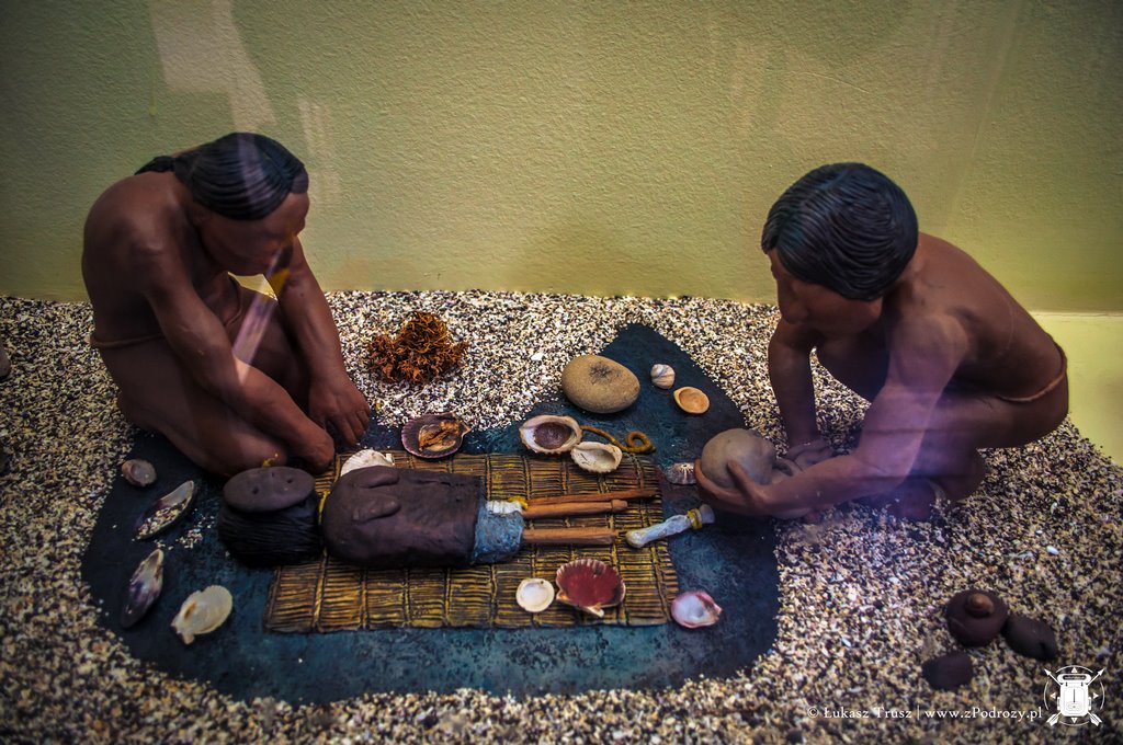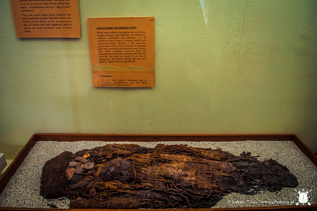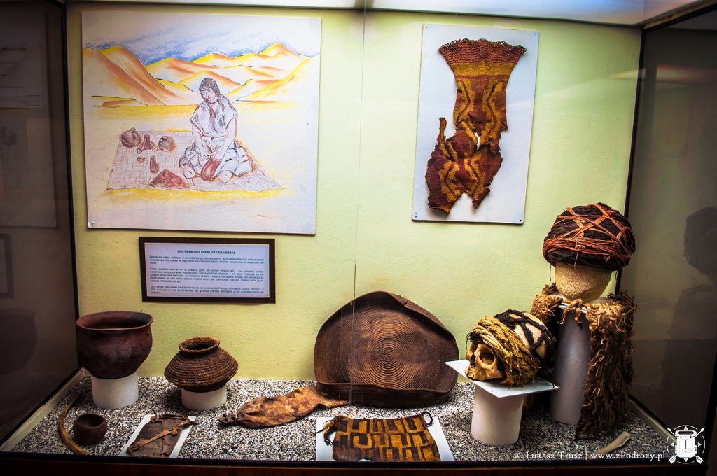 Aby zgłębić wiedzę o miejscu i regionie, w którym byłem postanowiłem odwiedzić muzeum. Właściwie to nawet dwa. Miałem je po sąsiedzku z moim hotelem, a wstęp był darmowy, więc tym bardziej byłoby żal nie zajrzeć. Pierwsze z nich to muzeum sztuki. Znawcą i koneserem nie jestem, także za wiele na ten temat się nie wypowiem, ale niektóre obrazy były ciekawe. Zwłaszcza wykonane z kawałków skór, opakowań i innych papierków. Drugim muzeum było „Regionalne muzeum Iquique”. Miejsce, choć z pozoru niewielkie, to zawiera bardzo wiele ciekawych zbiorów od szczątek zwierzęcych i ludzkich, przez rękodzieła, które powstawały wraz z rozwojem cywilizacji na tym terenie, po urządzenia wykorzystywane w stosunkowo niedawnych czasach. Być może niektóre z nich nadal moglibyśmy znaleźć w domach lokalnych mieszkańców. Jeśli ktoś miałby okazję przypadkiem się tu znaleźć to polecam. Co do samych eksponatów to zapraszam do zdjęć.