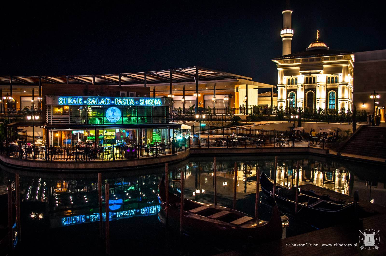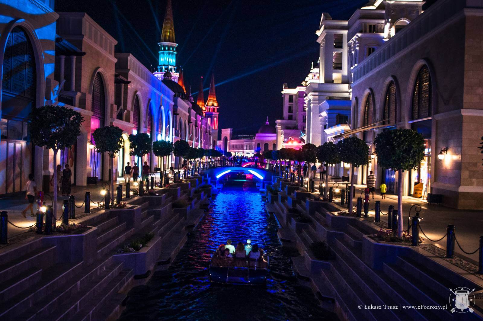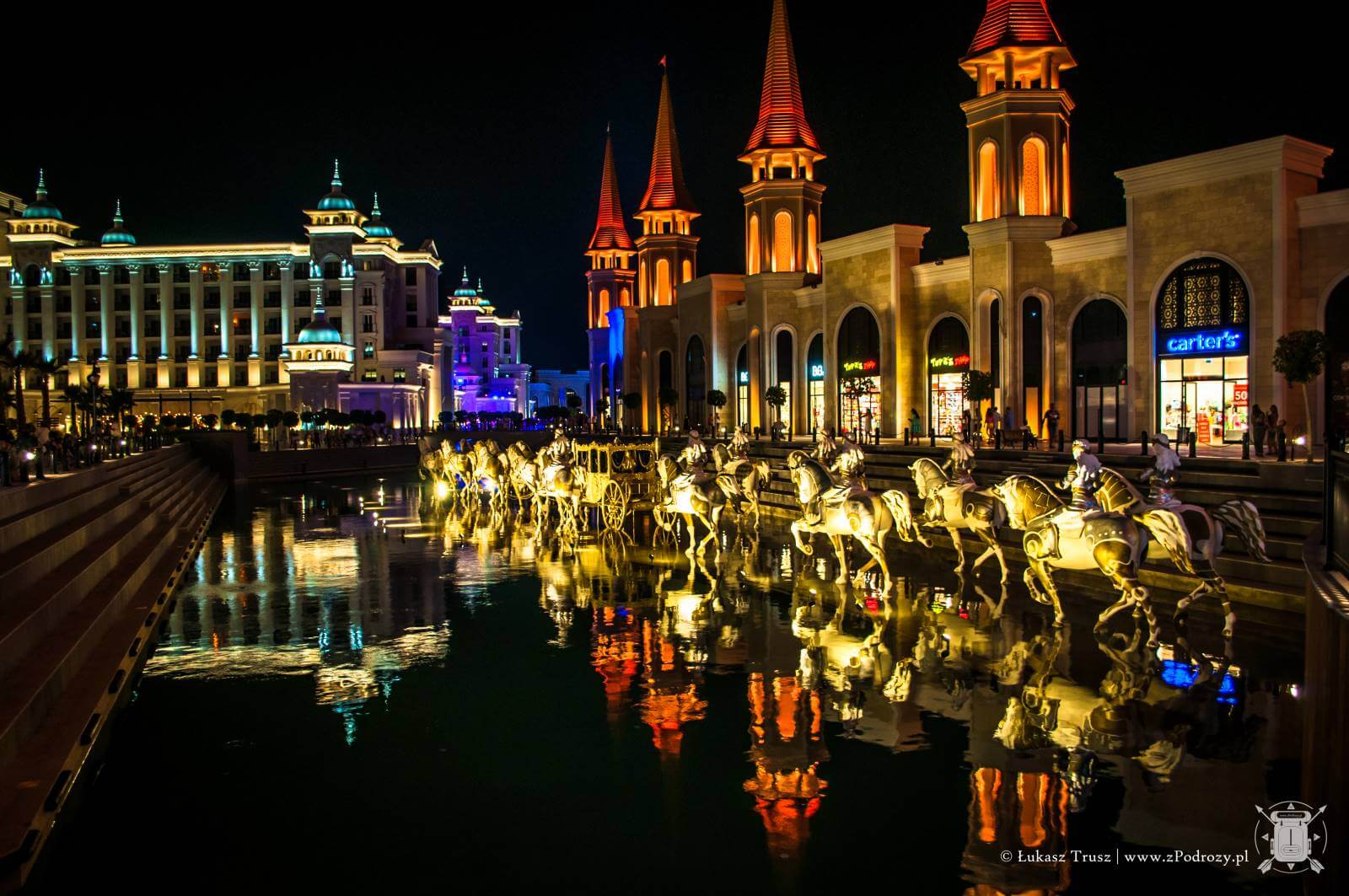Na szczęście część The Land Of Legends jest otwarta za darmo i możemy nacieszyć nasze oczy nie ponosząc żadnych kosztów. Do dyspozycji mamy knajpki, butiki z markową odzieżą, a także możliwość przepłynięcia się łódką po kanale (za to niestety musimy zapłacić). Plastikowe figury wyglądające na alabastrowe posągi, marmurowy pałac zbudowany na metalowym stelażu oklejonym kilkucentymetrowymi płytami i niesamowita gra świateł, których są setki robią niezwykłe “show” i ociekają tureckim przepychem. Zdecydowanie urządzone “na bogato”. Co noc dodatkowo możemy wziąć udział w pokazie świateł, muzyki i baniek mydlanych. Niestety na to się spóźniłem.