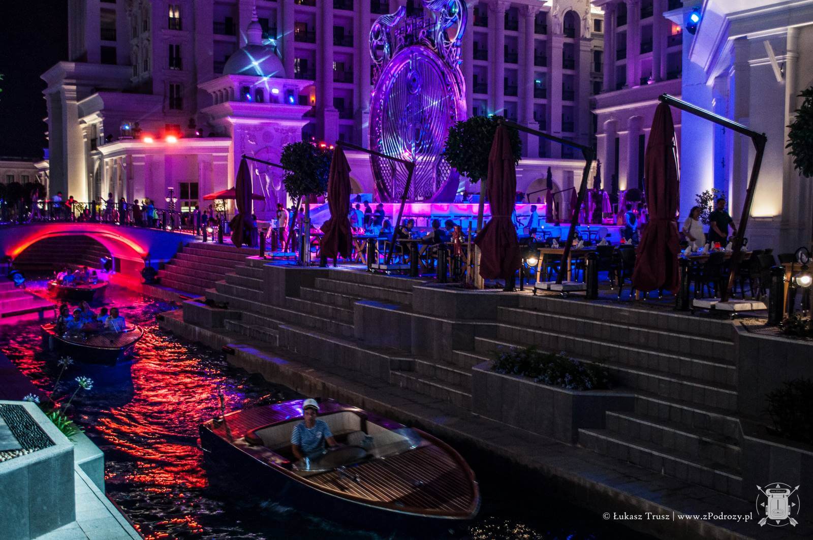 Ten ogromny obiekt przyciąga już uwagę swoim przepychem, gdy tylko przejeżdżamy obok. Nie wiem jak dużą powierzchnię zajmuje, ale teren jest ogromy! To połączenie bajkowego Disneylandu, weneckich kanałów po których możemy pływać łódkami oraz wypasionego aquaparku, gdzie poza zjeżdżalniami możemy wziąć udział w pokazach z delfinami, żółwiami i rekinami. Jakby tego było mało to znajdziemy również pasaż z butikami z “wyższej półki”, a co jakiś czas organizowane są koncerty gwiazd światowego formatu. Jeśli ktoś miałby potrzebę odpocząć i się przespać, to może skorzystać z jednego z 3 hoteli położonych na terenie parku. Ceny za taki nocleg wahają się od 116 do 675 euro za dobę.
