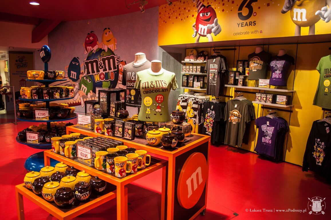Kto by pomyślał, że coś tak banalnego jak mały kawałek czekolady oblany kolorową polewą (czasem z orzeszkiem w środku) może zawojować cały Świat. Do tego stopnia, że powstały kilkupiętrowe sklepy z przeróżnymi gadżetami związanymi z owymi słodyczami. Mowa oczywiście o M&M’s World i to w Londynie! (Ah! Szkoda, że nawet dropsa nie dostanę za taką słodką reklamę). Kupić możemy tu naprawdę sporo. Od słodyczy w każdym odcieniu tęczy, po kubki, koszulki, magnesy, torby, a nawet japonki. Dodatkowo możemy sobie zrobić zdjęcie przy ludziku M&M’s przebranego za gwardzistę lub 4 M&M’sy przechodzące przez pasy, niczym The Beatles na okładce swojej płyty „Abbey Road”. Jeśli ktoś ma dzieci to niech uważa na swój portfel, bo kusi wszystko, a ceny można powiedzieć, że mogą przyprawić o słodki zawrót głowy.