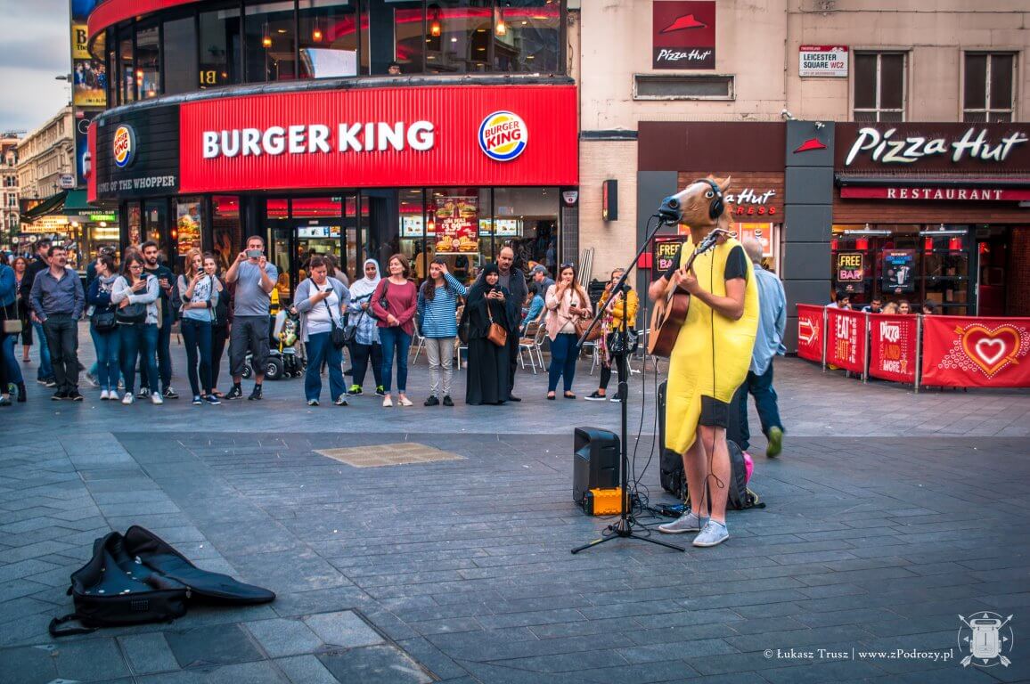 Podczas wizyty w Londynie samą atrakcją jest już przechadzanie się ulicami tego miasta. Podczas tak naprawdę kilku godzin spędzonych na przemierzaniu jego zakątków trafiłem między innymi na: koncert „człowieka-banana-konia”, pikietę na rzecz walki o prawa kobiet w Pakistanie (udzieliłem nawet krótkiego wywiadu, także sława i prestiż zbliża się wielkimi krokami – tak, tak jestem skromny), dwie sesje ślubne azjatyckich par oraz pub o nazwie „John Snow” (nie wiem na ile nazwa była wzorowana serialem „Gra o Tron”, ale chętnie bym go odwiedził, gdyby było w nim miejsce). Także miejsc do spacerów, jak i do zatrzymania się na dłuższą chwilę nie brakuje.