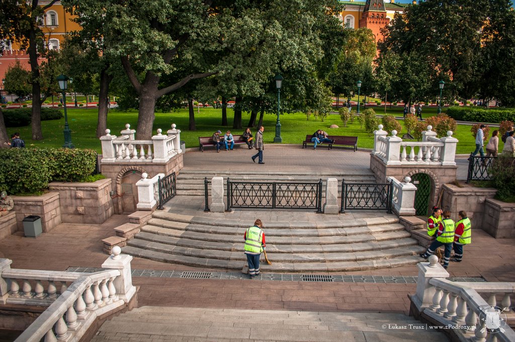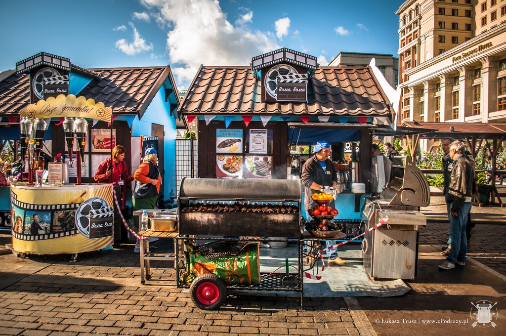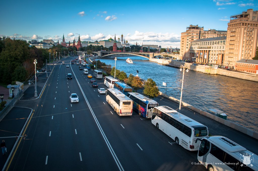 Jeśli mamy ochotę możemy przejść na drugą stronę rzeki i zobaczyć cóż tam się kryje pięknego. Mi niestety nie udało się. Po drodze miniemy sporo fajnych knajpek, gdzie możemy coś lokalnego zjeść i wypić. Moskwa to przede wszystkim również bardzo duże miasto i kilkupasmowe ulice. Jeśli będziemy chcieli przejść na drugą stronę to raczej szukajmy wzrokiem podziemnego przejścia, a nie brnijmy przed siebie w poszukiwaniu pasów, gdyż możemy ich nie znaleźć. Przetestowałem to na sobie. Bardzo chętnie bym tu wrócił, gdyż widziałem niewiele i właściwie tylko otarłem się o to miasto. Jeśli chodzi o porę roku to wydaje mi się, że warto tu przybyć na przełomie lata i jesieni lub zimą, kiedy wszystkie majestatyczne budowle i parki pokryte są grubym białym puchem. Tym oto meteorologicznym akcentem zapraszam Was do galerii, bo mimo niewielkiej ilości czasu, wpadło całkiem sporo zdjęć.