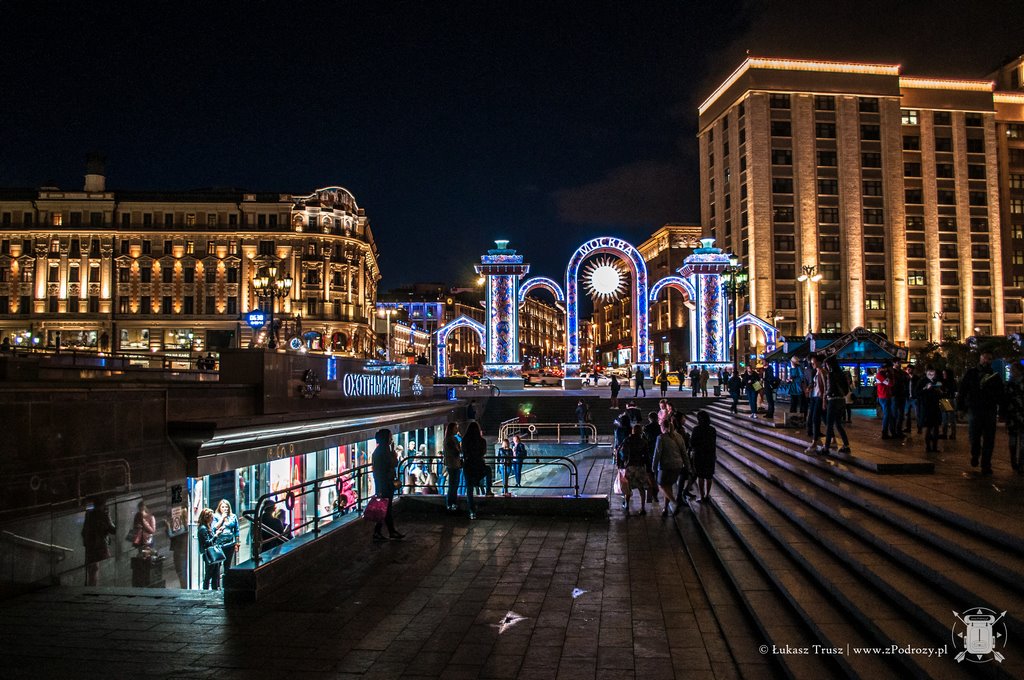 Z całą pewnością polecam rozpocząć wycieczkę od stacji Teatralnaya. Właśnie tutaj w zasięgu kilku kroków możemy znaleźć wszystko co należy zobaczyć w Moskwie mając mało czasu. Kreml, Plac Czerwony, Sobór Wasyla Błogosławionego, Moskiewski Maneż i Teatr Bolszoj, skąd pochodzi najbardziej rozsławiony w świecie rosyjski balet. To wszystko (a nawet więcej) leży u naszych stóp. Jest to również świetne miejsce do zakupienia pamiątek, gdzie najpopularniejsze to chyba papachy (zimowe czapki) i matrioszki. Nie zabraknie również magnesów.