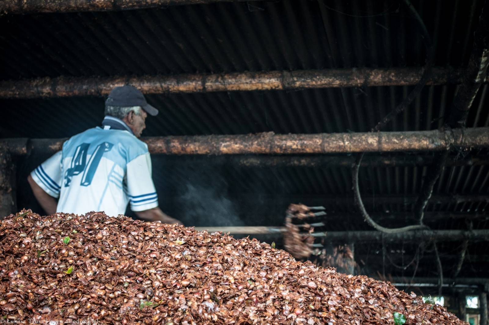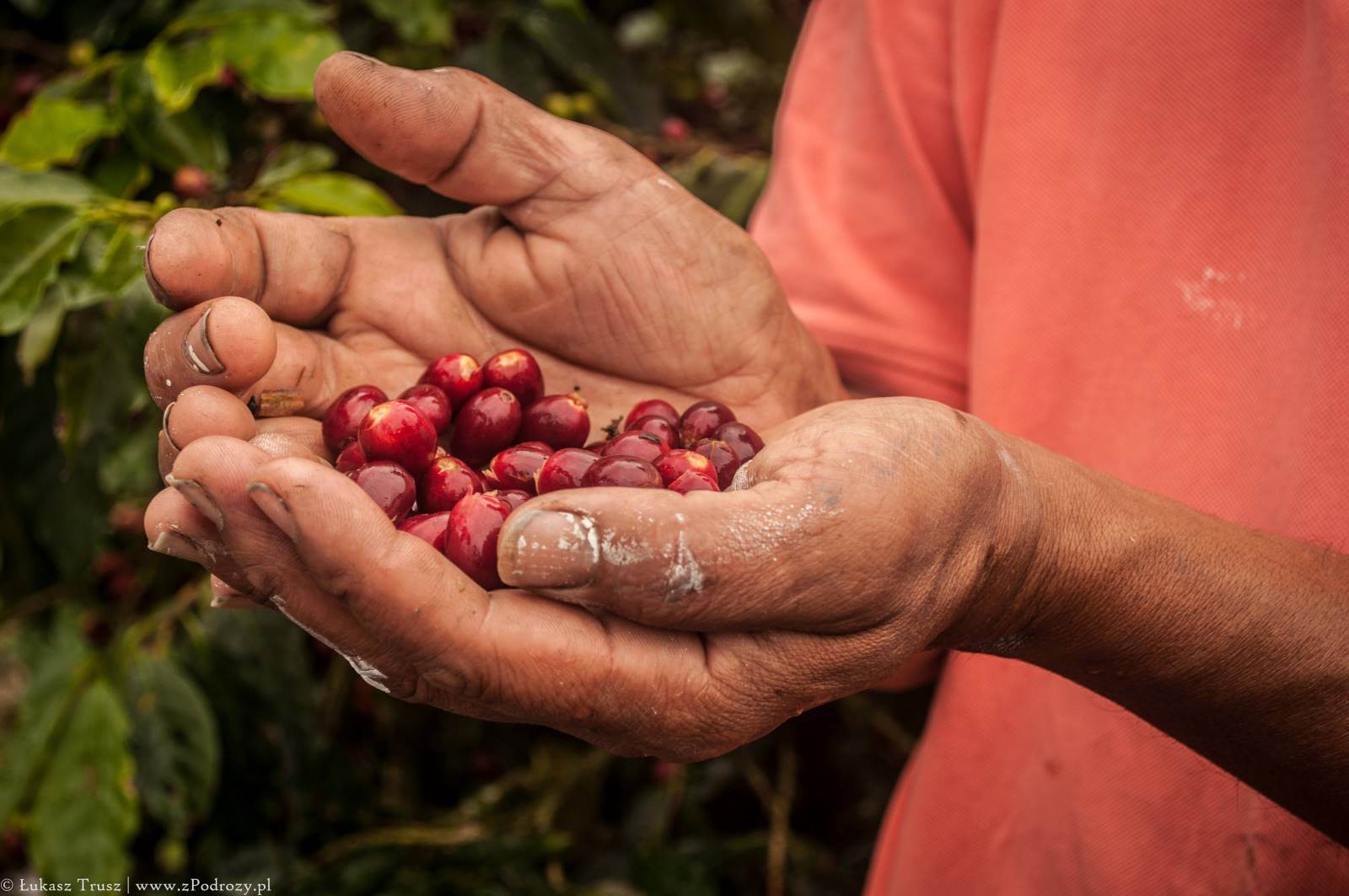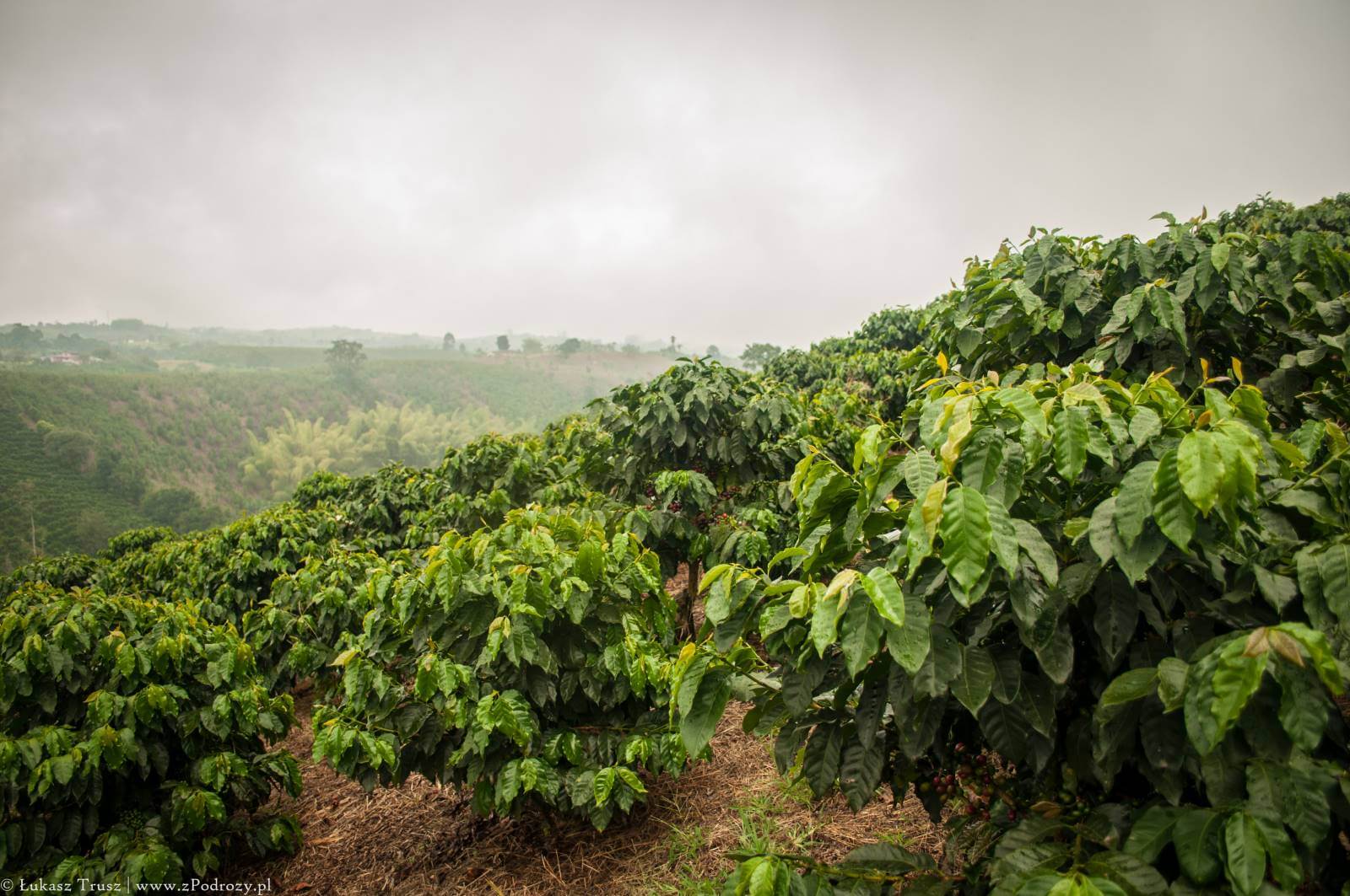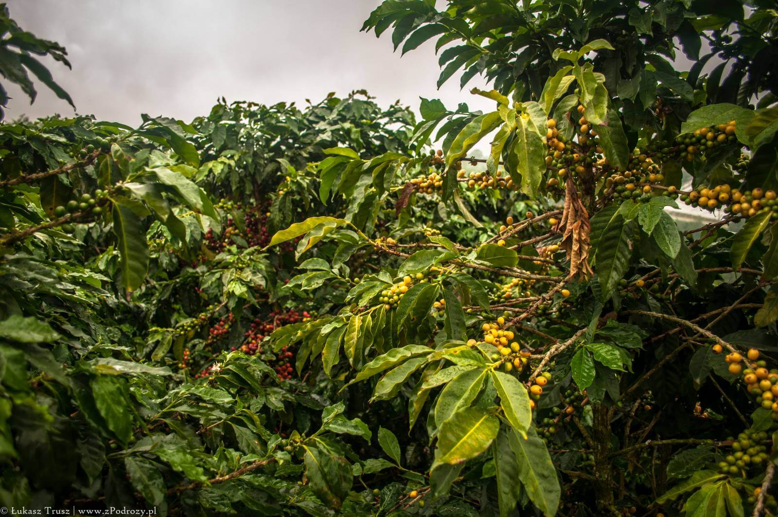 Pereira i rodzinna plantacja kawy. Jako że nie jestem wielkim kawoszem i zwykle piję mleko z kawą, tym bardziej byłem zainteresowany jak w sumie taka kawa sobie powstaje. W Kolumbii pola kawy są potężne i w niektórych miejscach ich widok rozpościera się aż po horyzont. Cała historia zaczyna się od krzaczka, który żyje kilkadziesiąt lat i właściwie nie wymaga większego zainteresowania. Co kilka tygodni obdarzyć nas nowymi owocami. Owoc jak owoc w środku ma pestkę. Taka oto pestka jest naszą kawą w bardzo początkowej fazie. Pestki są oddzielane od owoców w dość krótkim procesie produkcyjnym. Są suszone i w pewien sposób „prażone” w piecu. Suche są jasno żółte i bardzo lekkie, jakby nadmuchane.