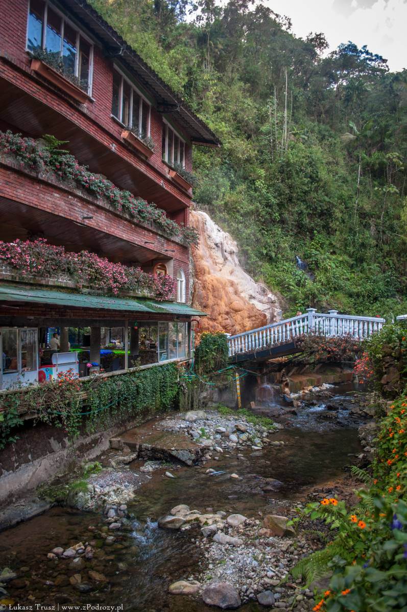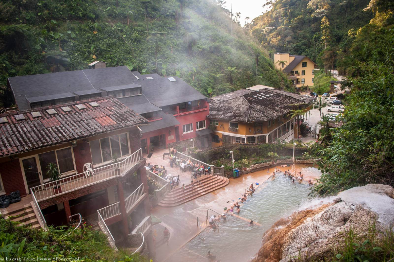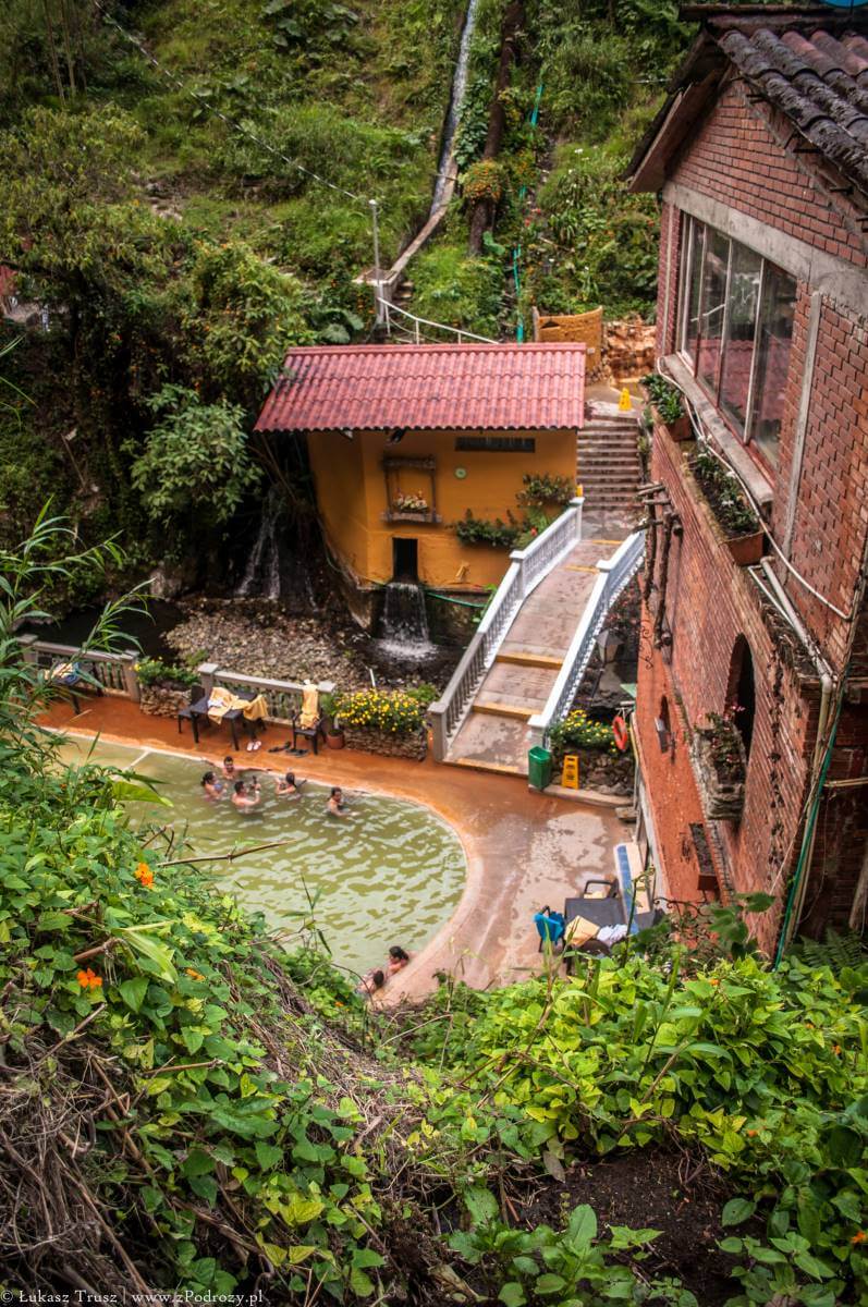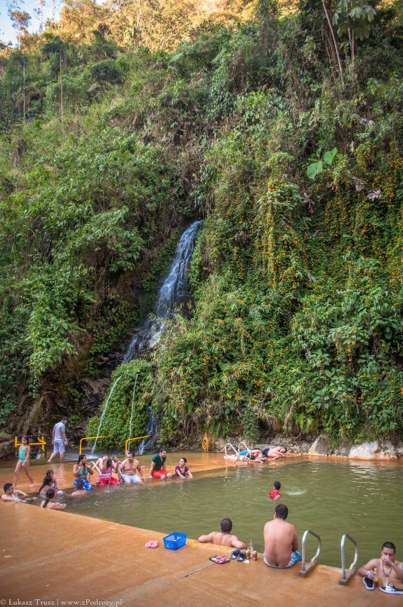 Na początek prawdziwa petarda! Termy położone między górskimi szczytami na wysokości ok 2800 m.n.p.m w miejscowości Santa Rosa de Cabal. Woda doprowadzona jest wprost z górskich wodospadów, a wszystko dodatkowo otoczone zieloną i gęstą roślinnością. Co więcej wszędzie unosi się gorąca para, która dopełnia ten magiczny widok. Wygląda to wprost majestatycznie. Dostęp do gorących źródeł jest do godziny 1.00 w nocy. Przynajmniej w tym kompleksie, do którego udało nam się dostać, a jest ich kilka. Na miejscu możemy napić się świeżo wyciskanych soków lub spróbować lokalnej kuchni i piwa. Niestety nic nie jest w stanie oddać tego cudownego klimatu, który trzeba poczuć na własnej skórze. Zapraszam zatem od razu do zdjęć, aby mieć chociaż szansę sobie to wszystko wyobrazić.