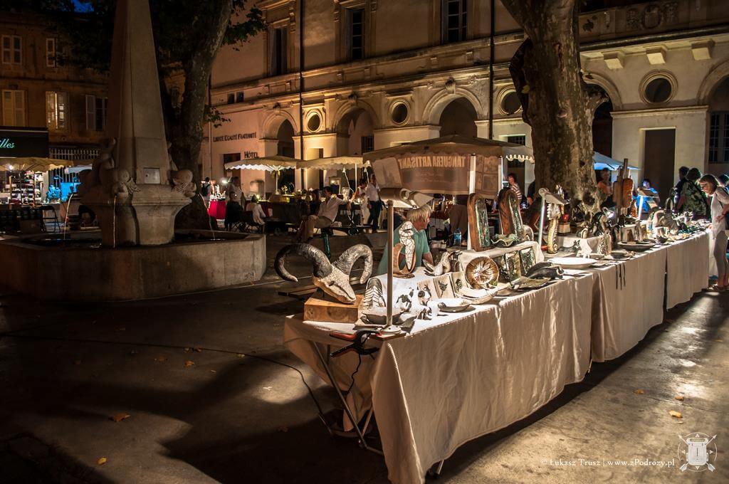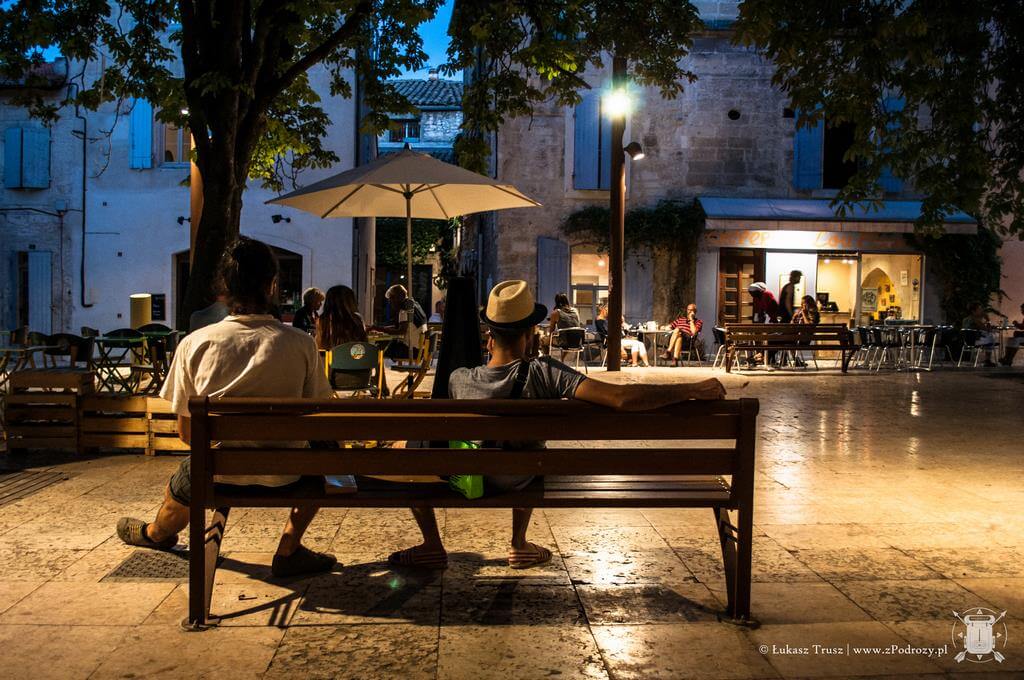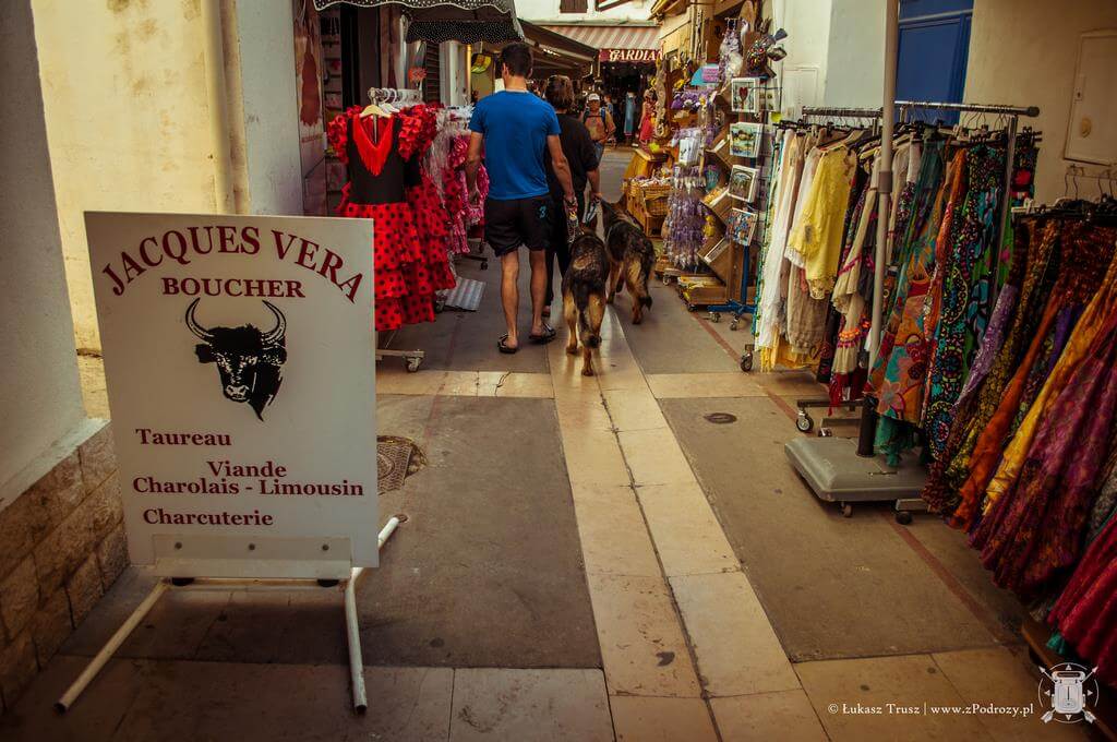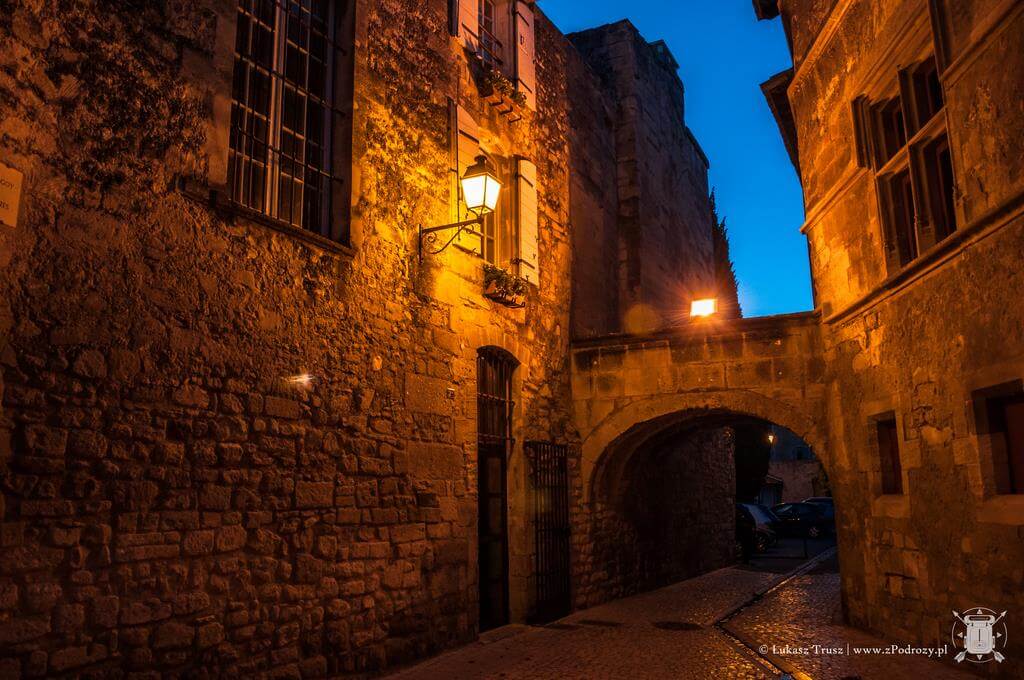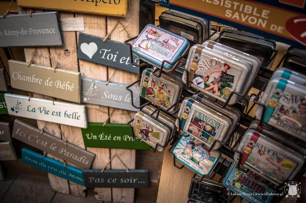 Samo miasteczko St Remy jest bardzo małe i niezwykle urocze. Zwłaszcza nocą, kiedy ludzie zasiadają w ulicznych knajpkach i zapalają się stare latarnie. Na deptakach rozkładane są nocne stragany z różnymi rękodziełami, pamiątkami i pachnidłami. Z tego co znalazłem na lokalnym portalu, główne produkty z tego regionu, to oliwy, wina i sery z koziego oraz krowiego mleka. Możemy znaleźć bardzo dużo różnych ozdób w starym stylu od zawieszek z napisami, przez zegary, po metalowe puszki na mydło. Co ciekawe, dreptając przez miasto możemy natknąć się również na znaki ostrzegające przed bykami! Nie tylko w Hiszpanii lubią się z nimi bawić i przed nimi uciekać oraz informację, że miasto nie odpowiada za ewentualne poniesione szkody.