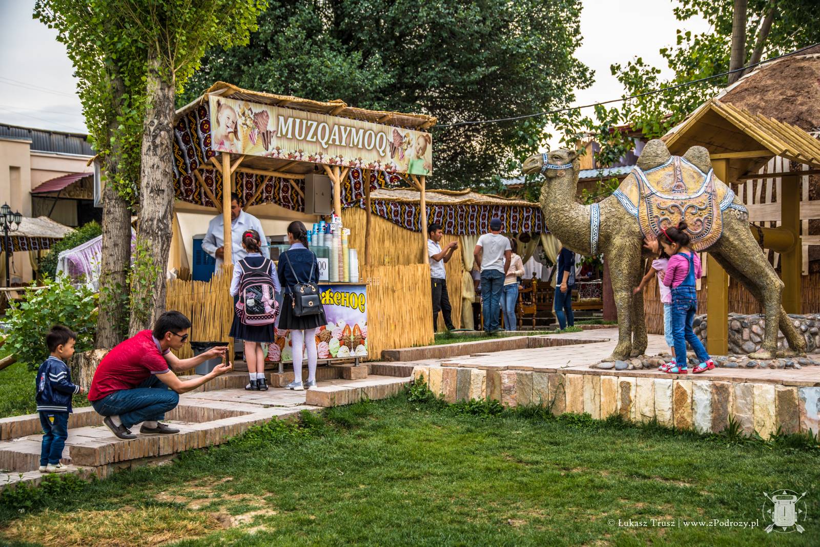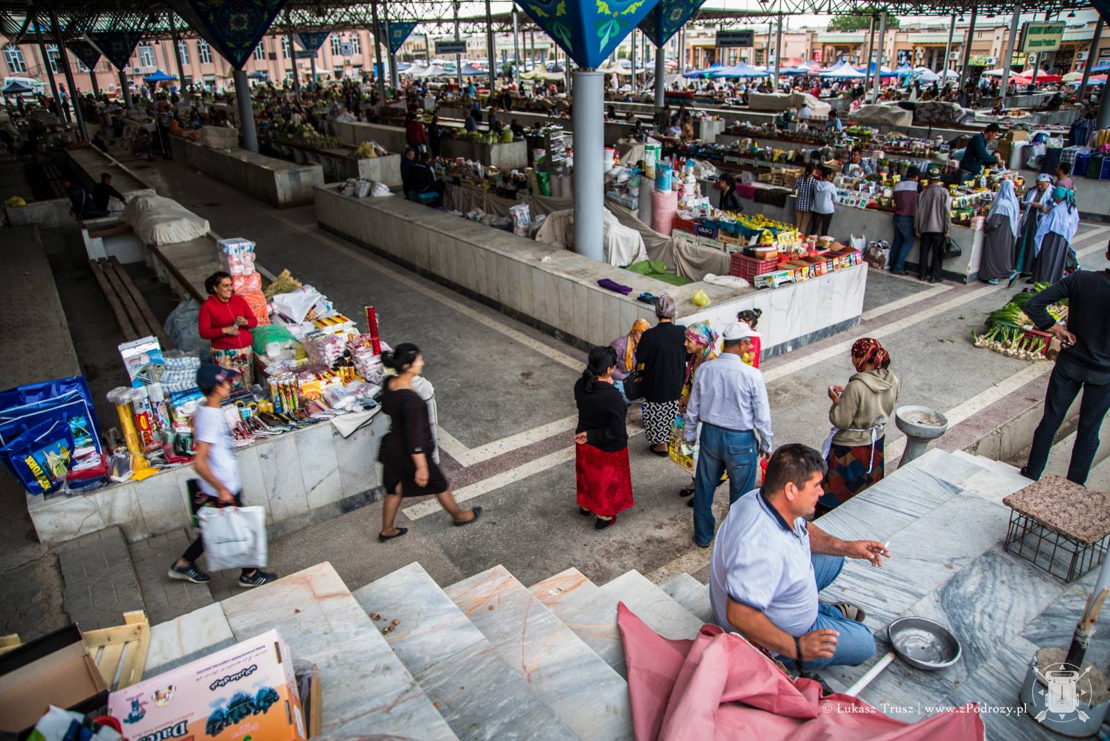 Poza jedzeniem możemy kupić również pamiątki. Ja zostałem fanem uzbeckiej porcelany, ponieważ uwielbiam pić z niej herbatę i przyjemnie się z nią obcuje. Na talerzach w sumie też dania nabierają pewnej egzotyki, gdyż wszystko jest ręcznie malowane! Dla kobiet polecam chusty i szale z kaszmiru. Piękna sprawa!