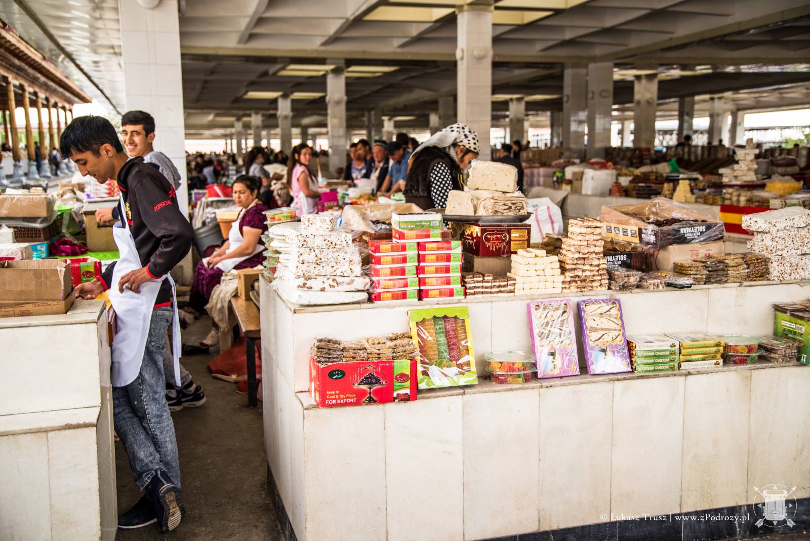 Bazar praktycznie graniczy z meczetem i jest istną krainą rozpusty, jeśli chodzi o smak. Znajdziemy tutaj wszystko czego powinno się spróbować w Uzbekistanie, a nie trzeba tego gotować. Najbardziej popularne chyba są suszone morele i trzeba im przyznać, że smakują wyśmienicie. Równie dobre są orzeszki ziemne, które hodują u siebie. Warto również kupić świeżą lepioszkę, czyli uzbecki chleb. Bardzo często podawany w restauracjach. Dla miłośników gotowania nie lada gratką będą przyprawy jakie można tu dostać. Od klasycznych pojedynczych smaków typu: papryka, pieprz i przeróżne zioła, aż po uzbeckie mieszanki do konkretnych dań lub mięs. Sam już nie pamiętam co przywiozłem, ale było tego sporo. Na pewno skusiłem się na uzbecki szafran! A co, jak szaleć, to szaleć.