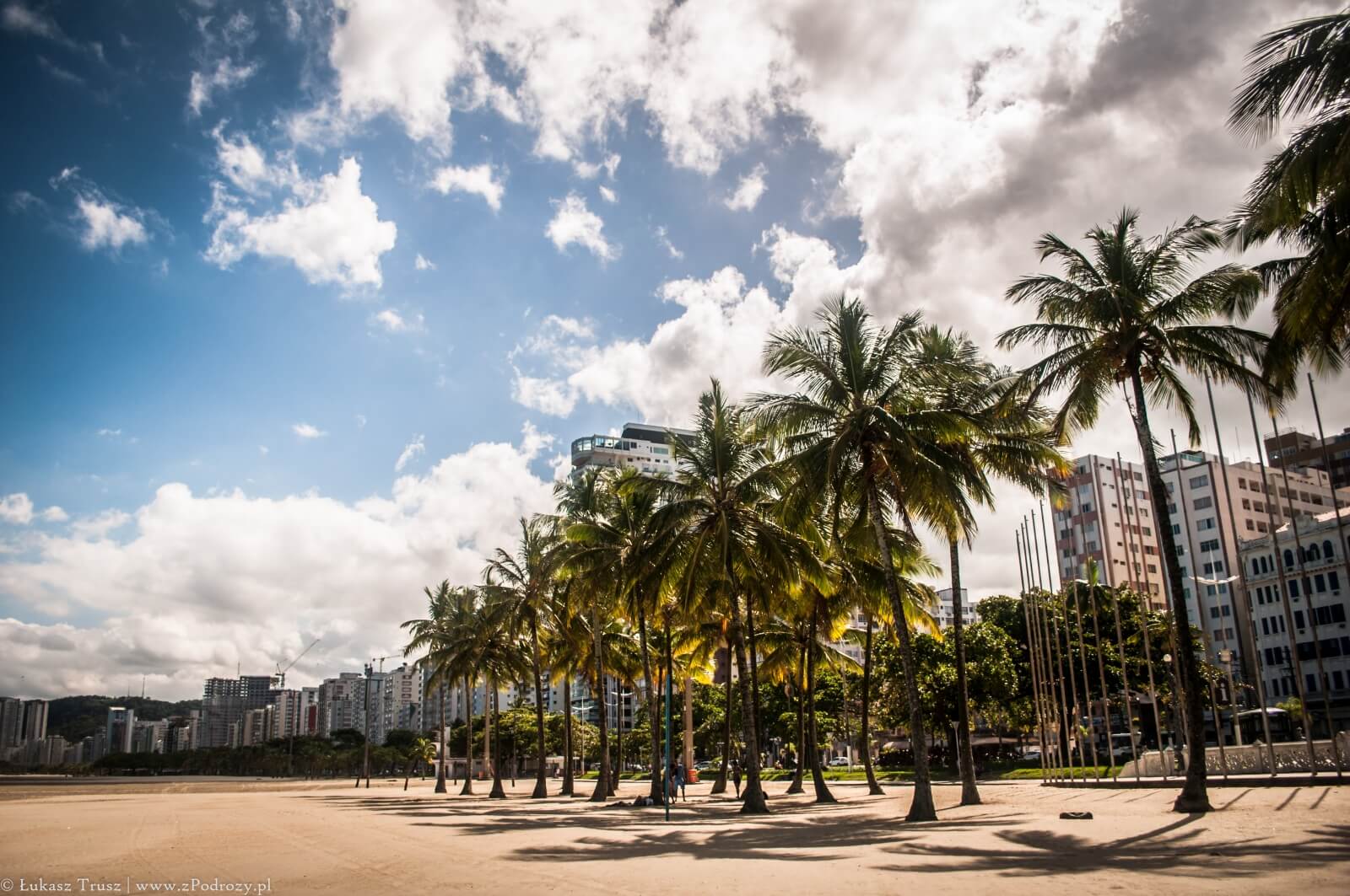 Santos – pierwsze miejsce do którego zawitałem przekraczając granice Europy (nie licząc lądowania w Sao Paulo). Miasto leży w południowo-wschodniej części Brazylii i posiada bezpośredni dostęp do Oceanu Atlantyckiego. Pierwsze co się rzuca w oczy to przepiękna linia brzegowa z jedną z największych plaż na świecie!