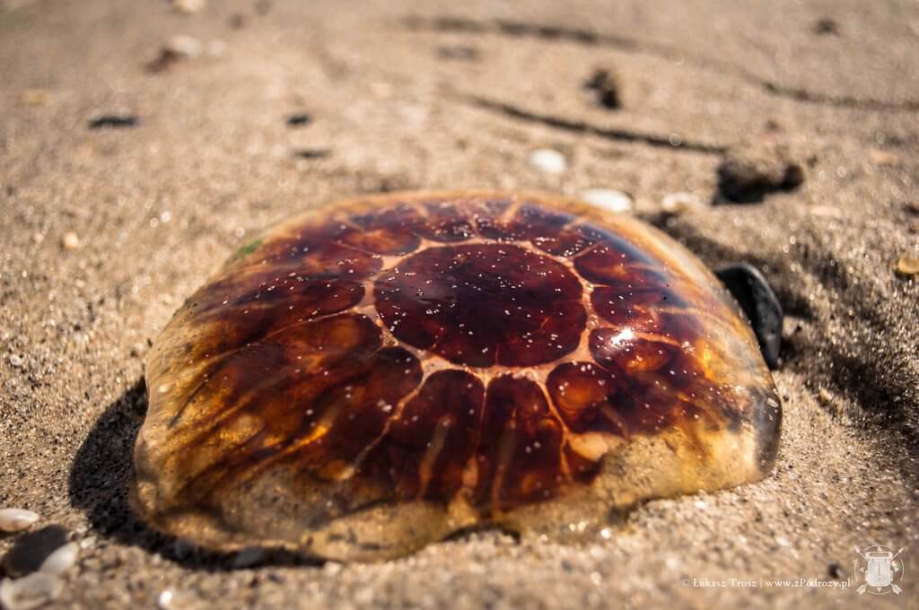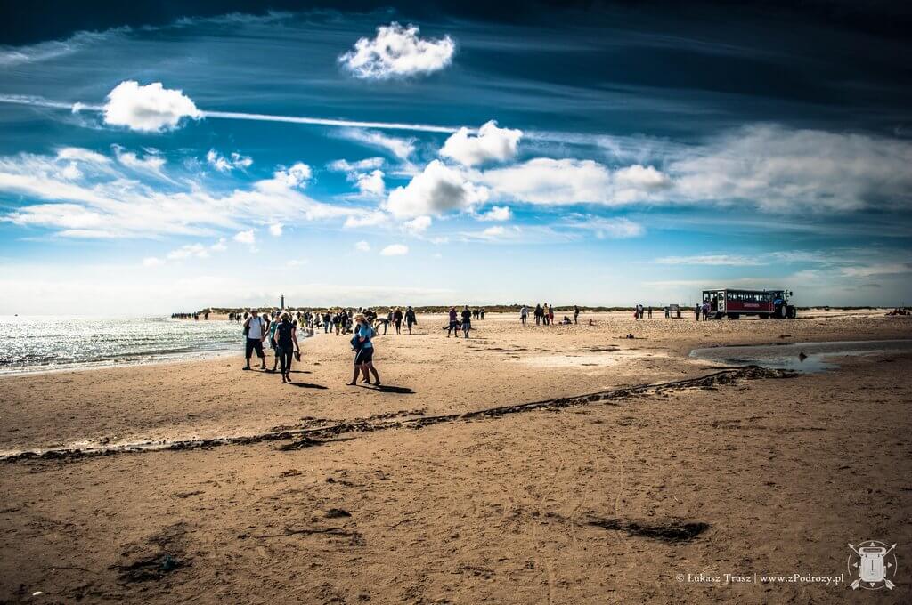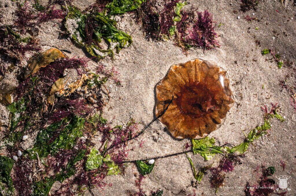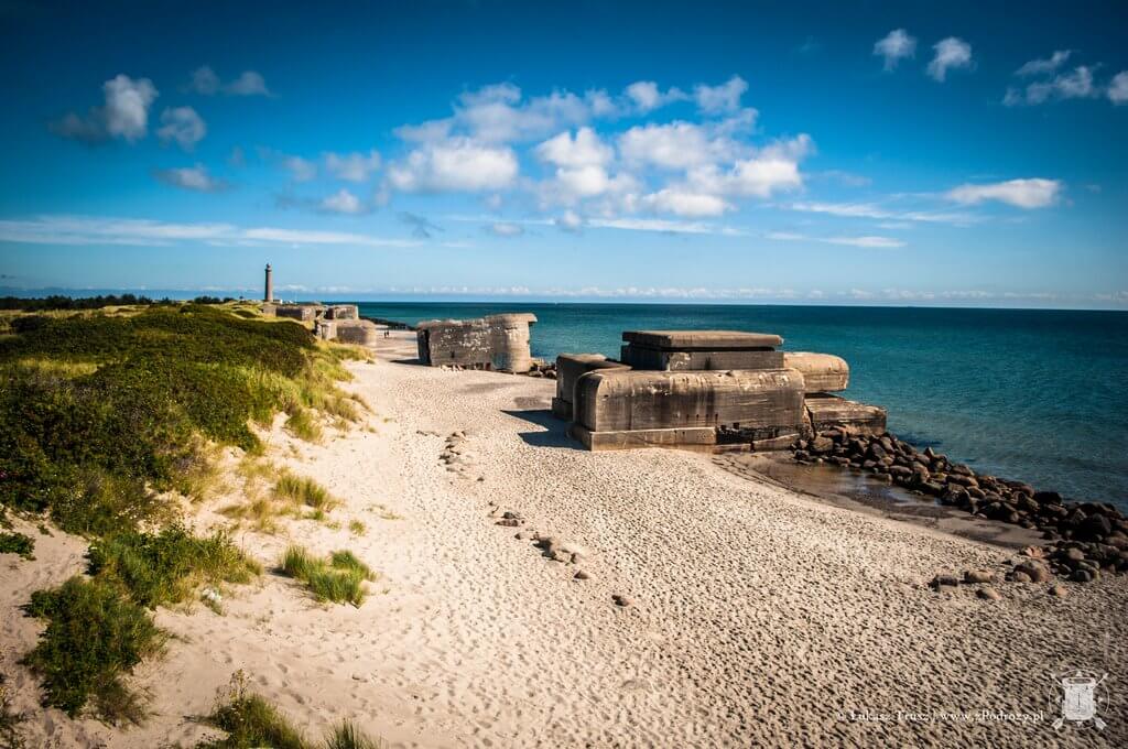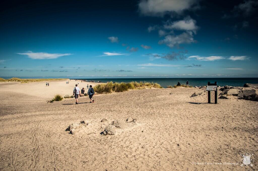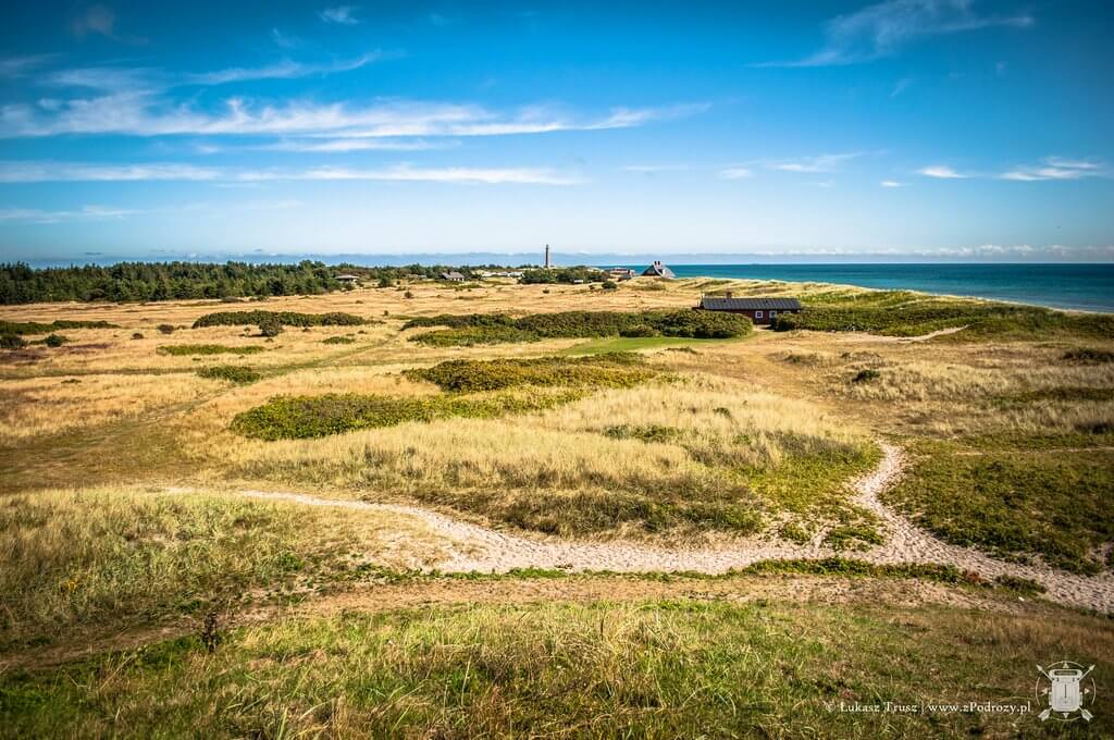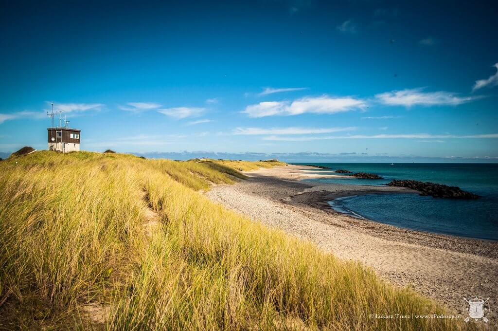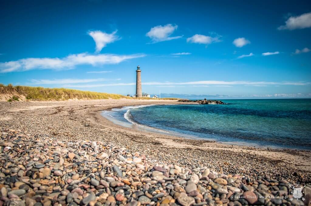 Aby jeszcze bardziej sprecyzować dokąd dziś zmierzamy, to Naszym punktem docelowym jest Grenen. Miejsce, do którego możemy jeszcze dojechać samochodem, ale dalej pozostaje nam już tylko spacer lub przeprawa rowerem po plaży. Ewentualnie jest jeszcze dostępny transport w postaci traktora z przyczepką, ale nie wiem czy trzeba mieć na niego wykupiony bilet, czy można po prostu wsiąść i mknąć przed siebie. Od parkingu do już naprawdę najdalszego, północnego punktu w Danii, a zarazem końca tego wyspiarskiego kraju, dzieli nas odległość ok 1,3 kilometra. Dla osób, które chcą zrobić sobie dłuższy spacer, polecam zaparkować swoją “furę” zanim wjedziemy na ostatnią, asfaltową prostą. Znajdziemy niewielki parking na uboczu, przypominający wyglądem zagrodę. Stąd wchodząc na wzgórze z żurawiem, którego zobaczycie na zdjęciach, możemy zacząć naszą przygodę. Idealne miejsce, aby spacerować wzdłuż plaży i podziwiać, to co zaserwuje nam natura. Atrakcji jest wbrew pozorom całkiem sporo. Od przeróżnych muszelek, przez ciekawe, wyrzucone na brzeg meduzy, aż po na przykład foczki. Na swej drodze spotkamy również latarnię morską, która z oddali pięknie komponuje się z trawiasto-piaszczystą scenerią.