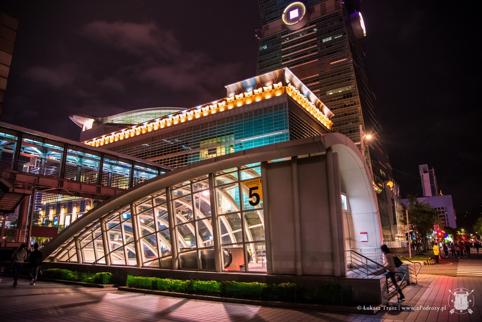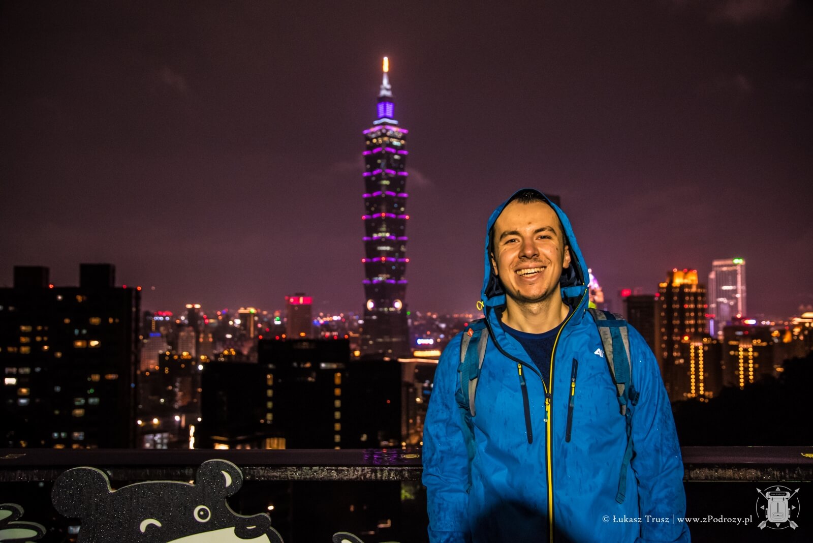 Właściwie, to ciężko go nie zauważyć będąc w jego okolicy. Piętrzy się, świeci i błyszczy z daleka. W celach zapoznawczych i zmierzenia się z nim oko w oko warto zacząć przygodę w miejscu o tajemniczej nazwie “Elephant Mountain” (z ang. “góra słonia”). Choć słoni tam nie zastaniemy, to jednak widok z tarasu widokowego jest zacny. Miejsce położone kilkaset metrów od naszego głównego bohatera. Wejście na szczyt po kamiennych schodach zajmuje jakieś 15-20 minut. Po drodze mamy kilka innych punktów. Po osiągnięciu celu możemy nawet wydłużyć wycieczkę i udać się wgłąb górskiej trasy. Najlepszym momentem na wejście jest poranek lub popołudnie z widokiem zachodzącego słońca. My niestety trafiliśmy na wieczorny deszcz, więc zdjęć z trasy mamy niewiele, ale co nieco udało się uchwycić. Jeśli chodzi o dojazd do tego miejsca, to najlepiej wysiąść na stacji Xiangshan (ostatnia stacja czerwonej linii metra) lub na stacji Taipei 101 (jeden przystanek wcześniej) i rozpocząć swój spacer. Trasa jest raczej dobrze oznaczona, więc nie powinniśmy się zgubić.